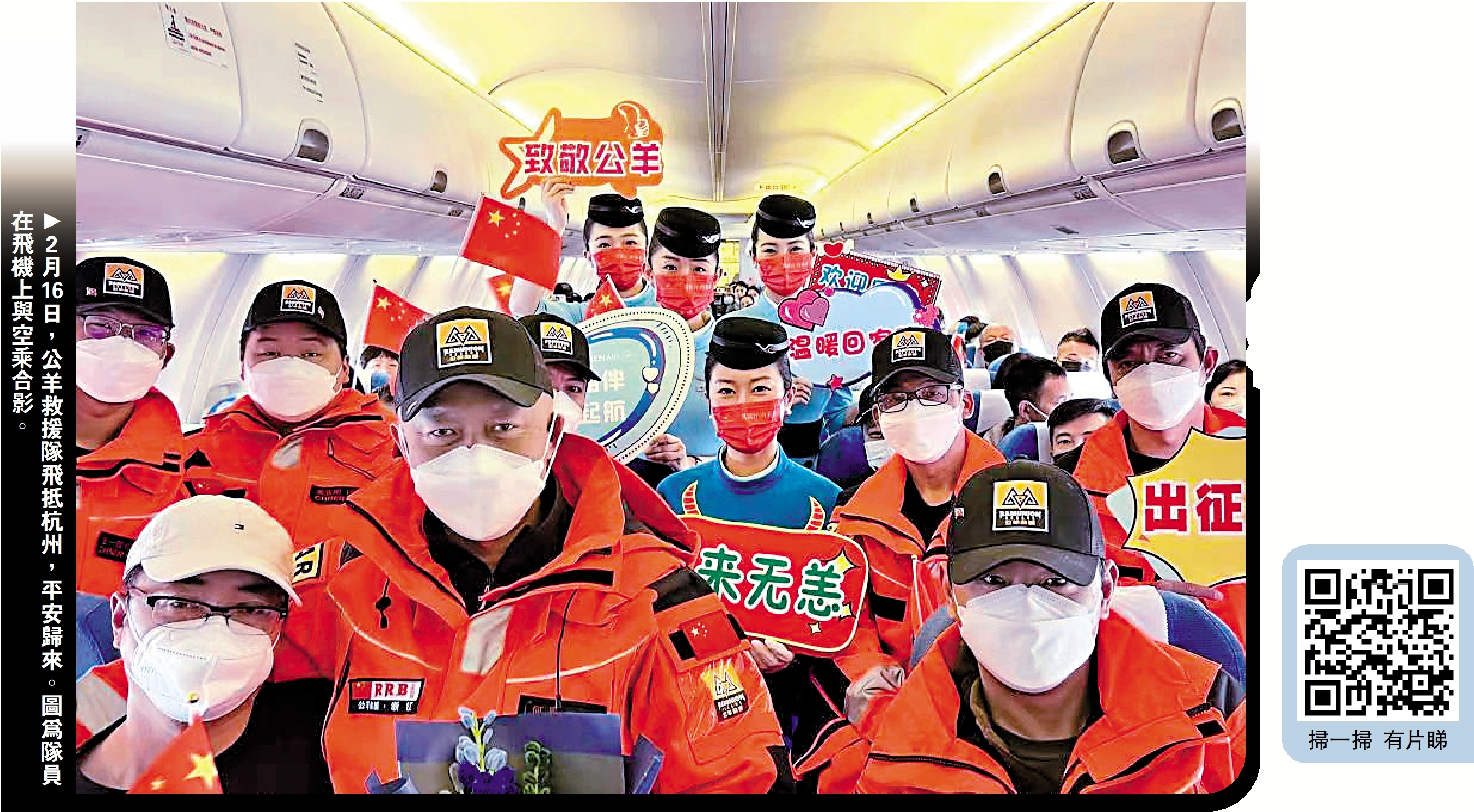 (大公報 記者 俞晝)根據土耳其當地災情,內地的社會救援力量正陸續撤離。16日下午3時,中國首支奔赴土耳其的社會救援力量─公羊救援隊抵達杭州蕭山國際機場,受到人們的熱烈歡迎。公羊救援隊在土耳其救援五天內,在哈塔伊省的四個不同城市,共搜尋坍塌建築物178幢,累計救出倖存者9人,搜尋到遇難者15人,共計24人,同時協助土耳其當地政府救援力量定位有壓埋人員線索的現場共16處。公羊隊領隊、會長何軍返程中寫日記悼念一位遇難男孩「伊爾馬茲」(土語:永不放棄),提到「我已經永遠都無法忘記他的那雙大眼了……」