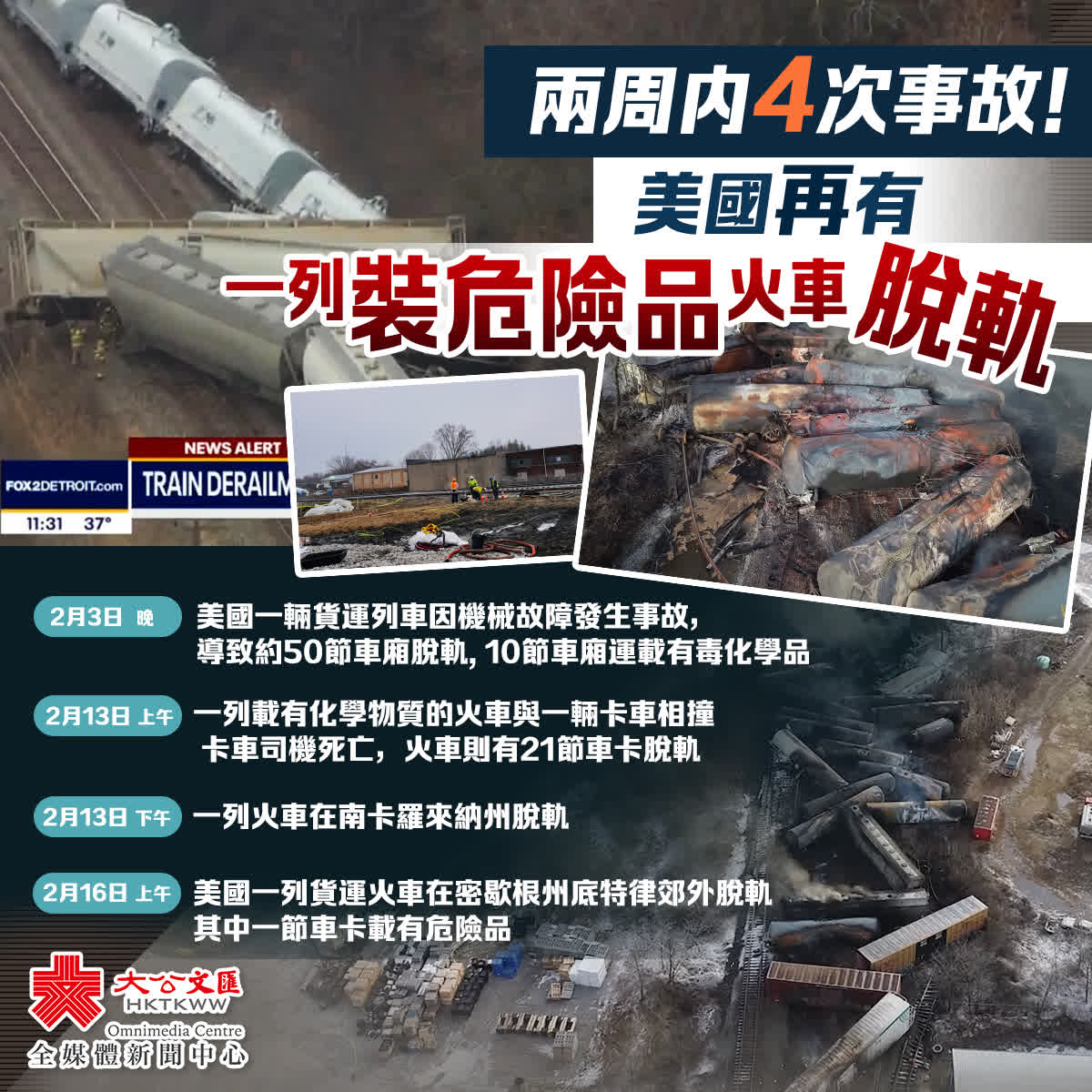 值得一提的是,這已經是本月3日晚之後,美國發生的至少第3起列車脫軌事故。