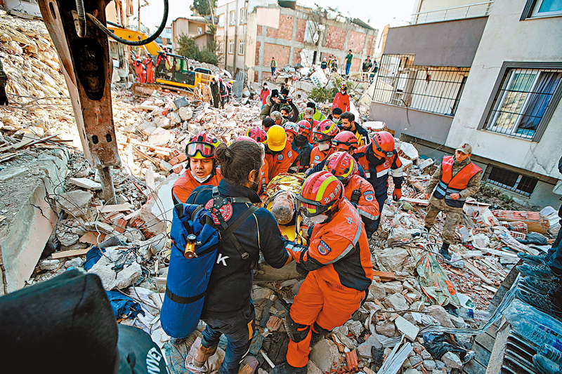 特區救援隊在安塔基亞市災區瓦礫中救出一名被困超過7天的女性生還者