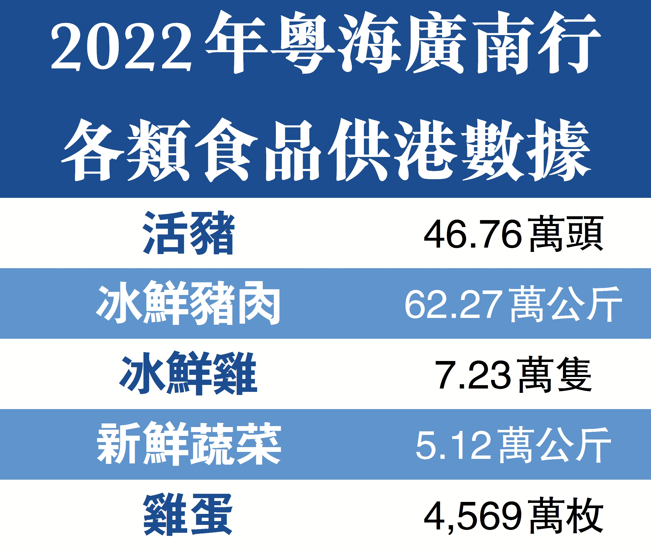 香港社會逐步復常,經濟前景好轉,對鮮肉消費需求上升。黃艾武表示,為了保供穩價,他們每天會根據市場需求安排足够的活豬數量,將活豬運到粵海廣南行在深圳中轉倉,經檢疫後運至香港上水屠房。