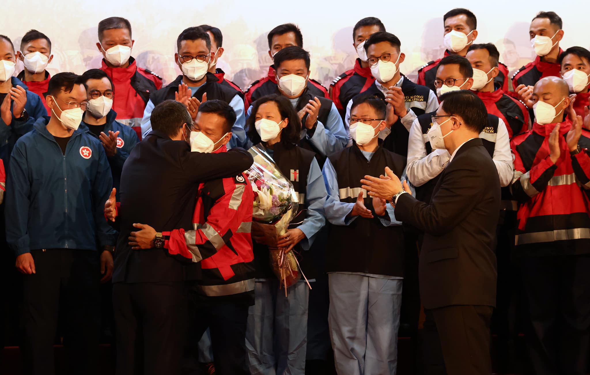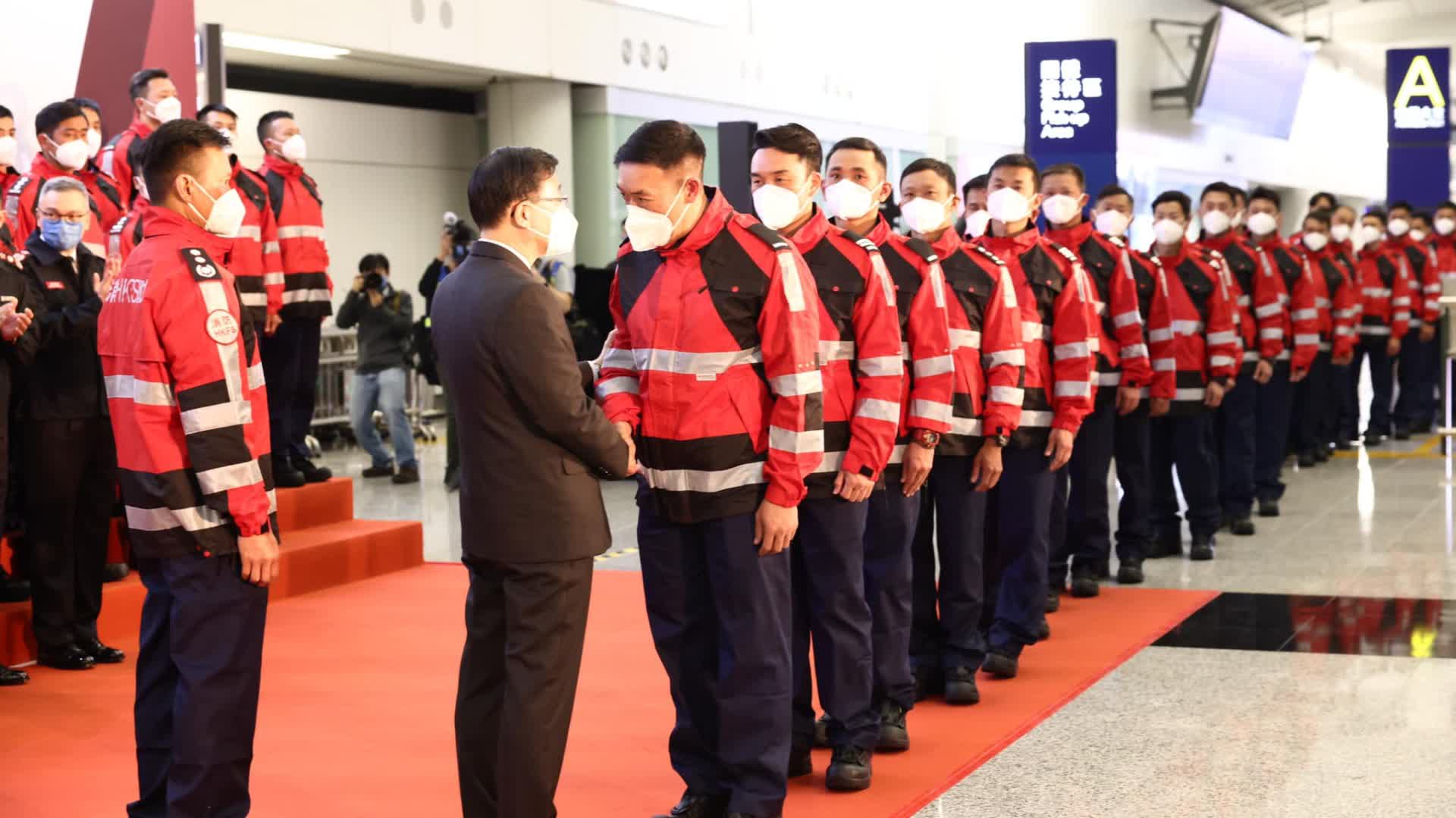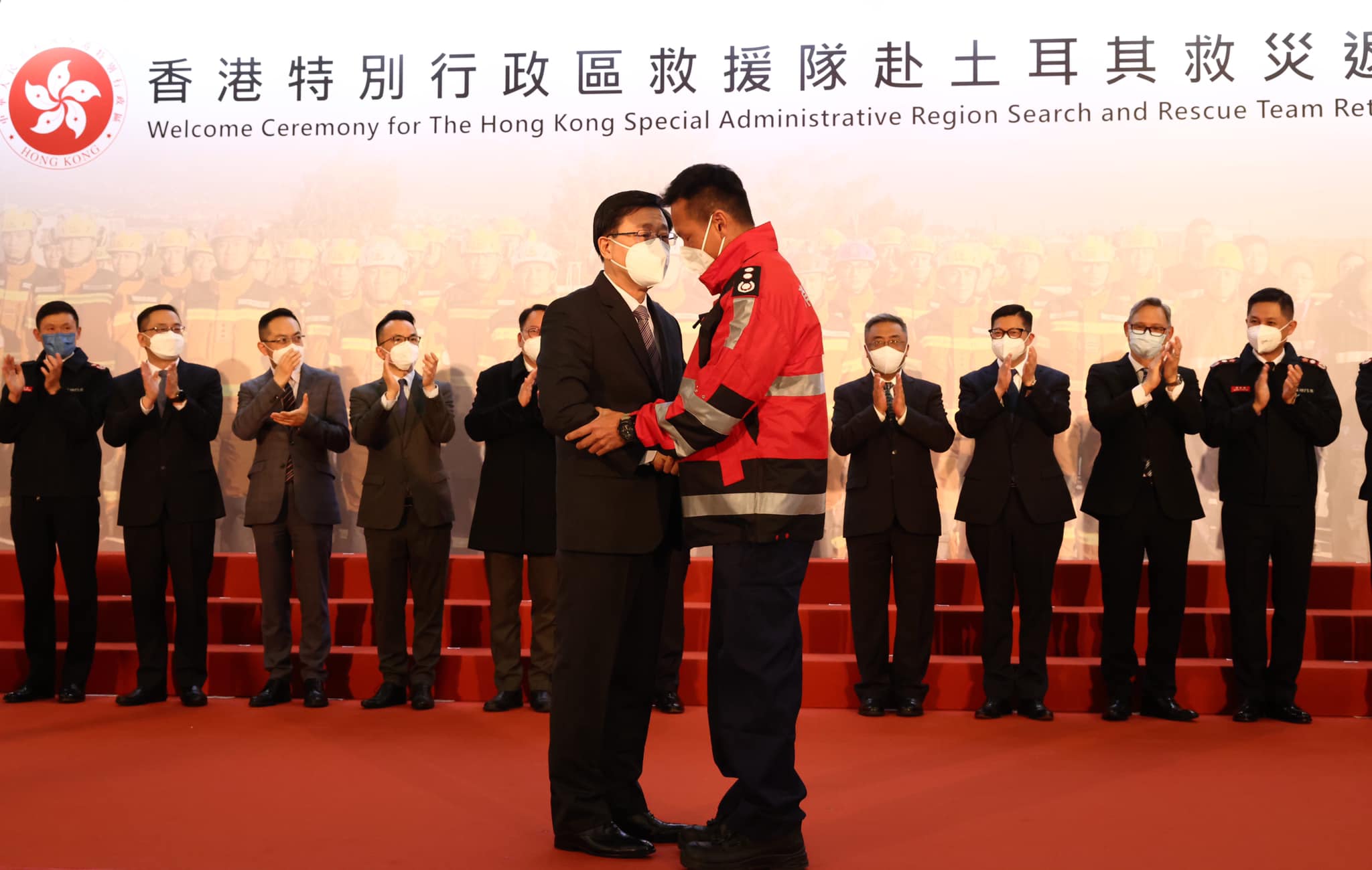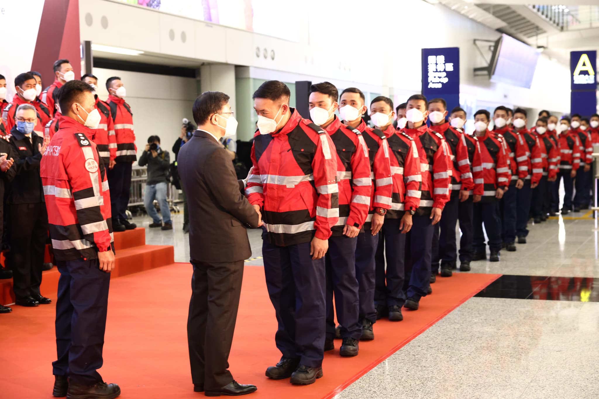 李家超表示,救援隊冒着風險奮勇救人,充分展示愛心、專業和特區政府公務員團隊的優秀能力,並充分彰顯無分國界的互助精神,對他們的努力和無私付出予以肯定,謹代表特區政府及香港市民向他們致以謝意。