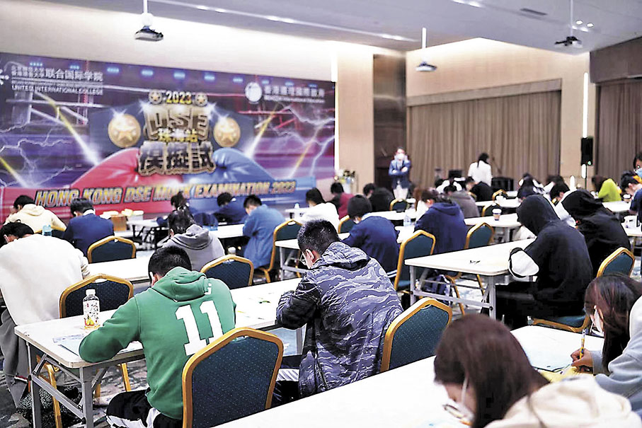 (香港文匯報記者 方俊明)香港與內地教育交流日趨緊密,作為香港高中畢業的主要資歷並獲歐美亞洲多地大學認可的考試,香港中學文憑考試(DSE)於內地正漸受重視。昨日,內地首場DSE模擬考試在珠海北京師範大學—香港浸會大學聯合國際學院(簡稱「北師港浸大」)正式開考,為DSE歷來首次在內地設的模擬考場,共吸約200名考生應考。是次模擬試被視為有助推進粵港澳大灣區國際教育的深度合作,打造大灣區教育和人才高地。有考生受訪時表示,通過模擬試可進一步了解自己的應試水平,為未來開拓更多選擇。