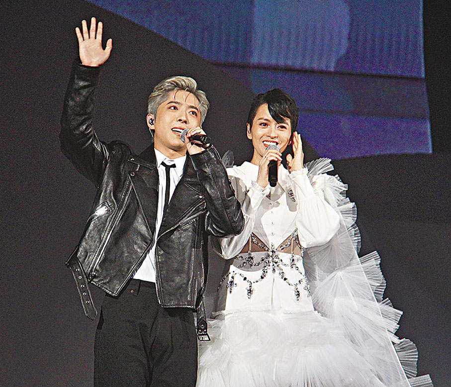 (香港文匯報記者 達里)一連3場梁詠琪(Gigi)《時間遇上我們演唱會》前晚於紅館舉行首場演出,Gigi的老公和女兒Sofia、許冠傑、蔡卓妍、許茹芸、小美、關心妍、楊愛謹等均有入場欣賞。頭場表演嘉賓有兩位人氣男歌手張敬軒和呂爵安(Edan),曾在電影中飾演Edan媽媽的Gigi,更在台上表示相當緊張Edan的終身大事,嚇得Edan不知所措。