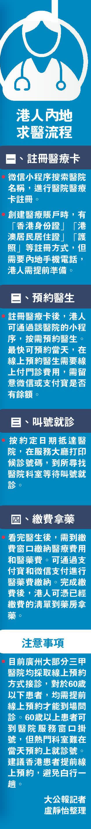 記者在廣中醫一附院腫瘤科室遇到了另一個香港患者譚先生。譚先生是十多年的鼻咽癌患者,「近年腫瘤病情復發擴散到全身。我到香港公立醫院、私立醫院都看過,西藥用得七七八八,香港醫生推薦我來廣州試試。」他認為,廣州的醫院有中西醫結合的優勢,而且治療病例樣本大,醫療經驗豐富,所以通關後馬上來看診。「這是我第一次到廣州看病,也是專程掛了專家號看的。」