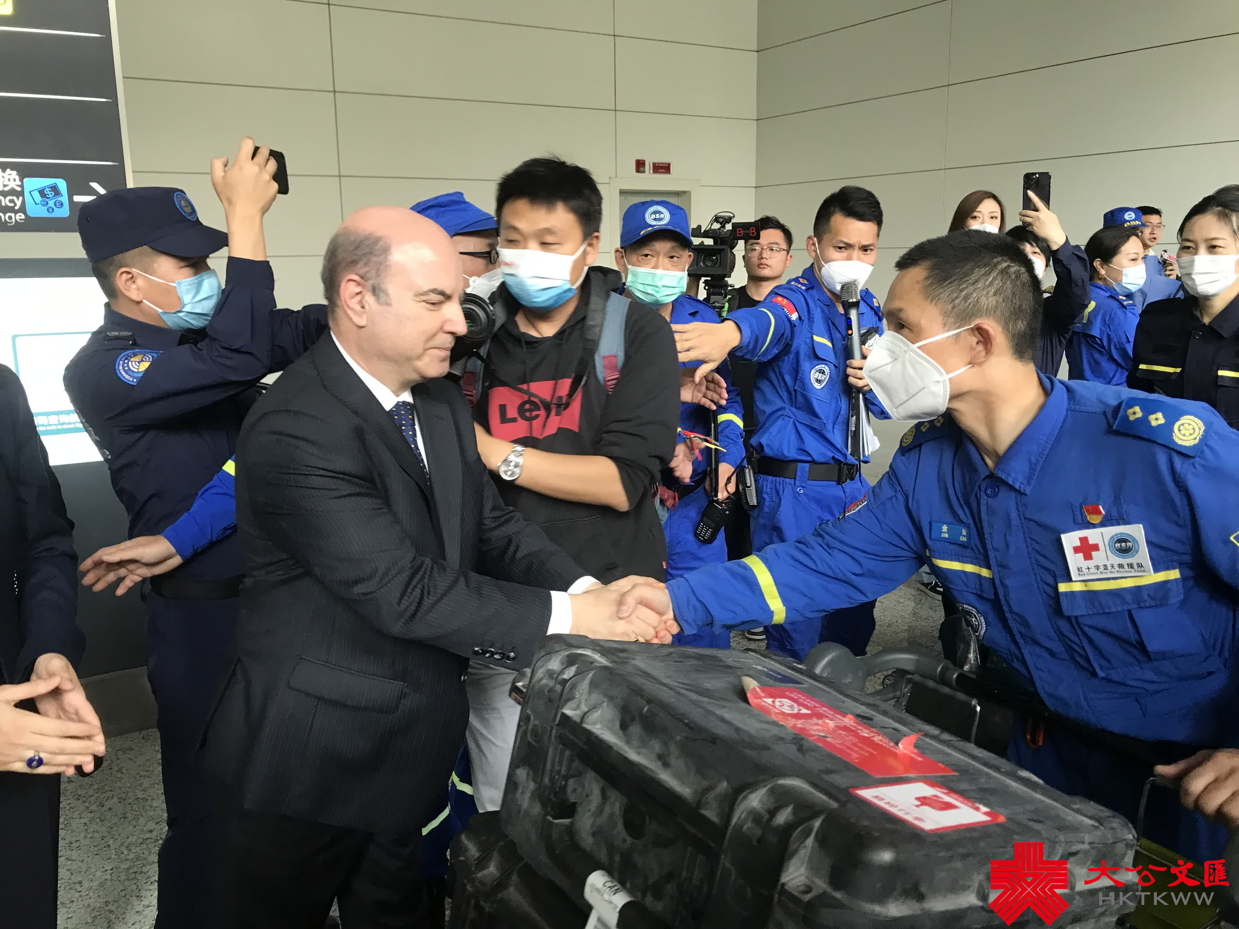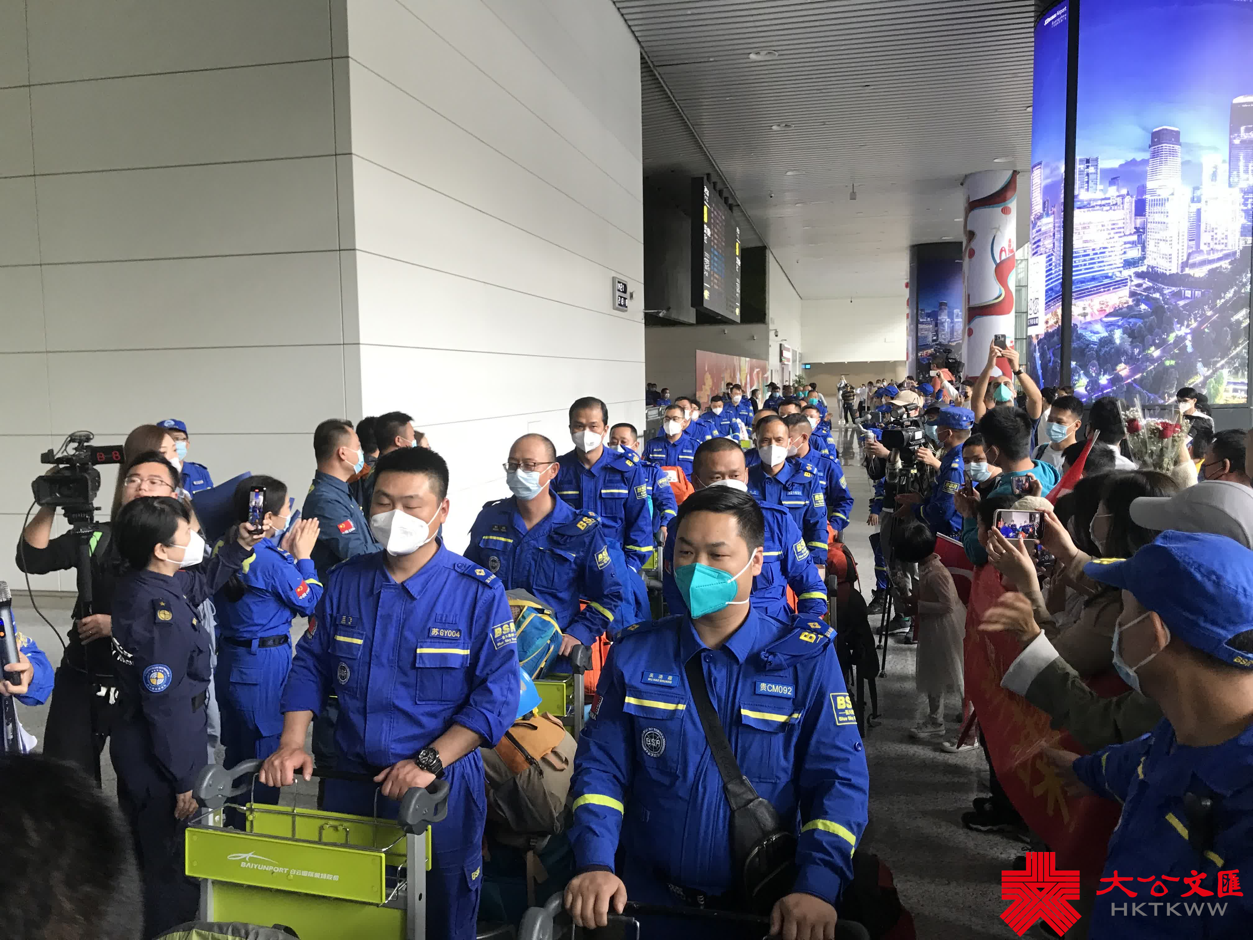 (大公文匯網記者 敖敏輝)今日(19日),援助土耳其抗震救災的中國藍天救援隊第二批139名隊員抵達廣州白雲機場,平安回國。來自廣東、湖南、貴州、江蘇等十餘省市的藍天救援隊隊友以及土耳其駐穗使領館官員、在穗土耳其居民、家屬、廣州市民等,到場迎接英雄。