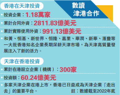 朱鵬表示,長期以來,天津與香港有着良好的合作關係,兩地人民深厚情誼源遠流長。截至2022年底,香港累計在津投資企業1.18萬家,累計合同外資2811.83億美元,累計實際使用外資991.13億美元。和黃、恒基、新世界、恒隆、嘉里、華潤、新華、滙豐等一大批香港知名企業長期深耕天津市場,為天津高質量發展注入了新的活力。與此同時,香港作為國際金融中心、貿易中心和航運中心,也吸引了眾多天津企業赴港投資發展。截至2022年12月底,天津累計在港設立企業(機構)300家,投資額60.24億美元。多家天津企業在港上市,香港已日益成為天津企業「走出去」的重要平台。