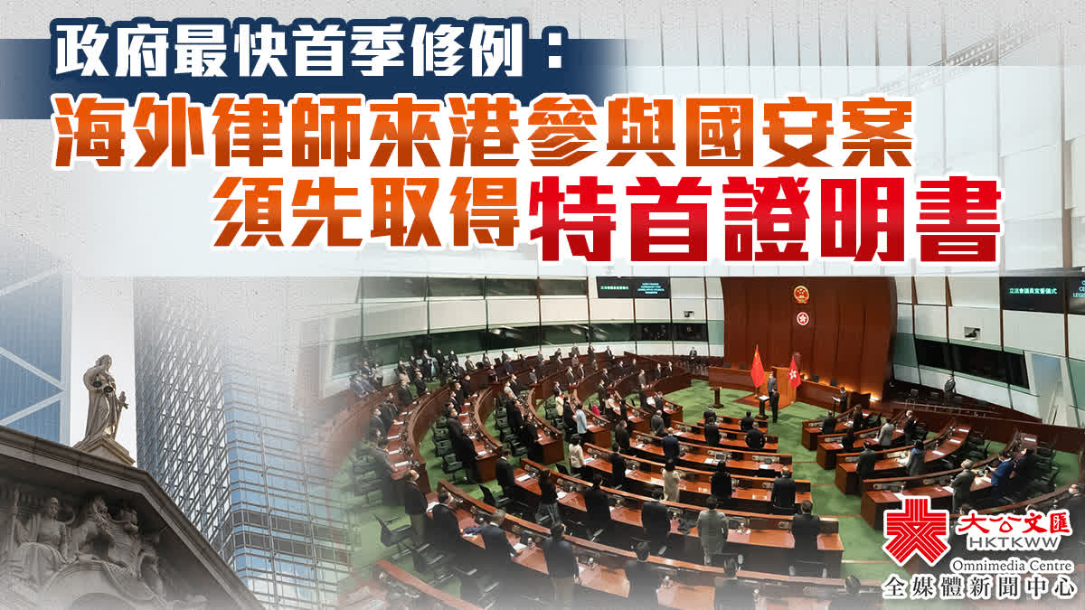 大公文匯全媒體報道,政府擬就《法律執業者條例》提出立法修訂,以適當處理有關不具有香港特區全面執業資格的海外律師參與涉及國家安全案件的事宜,強化維護國家安全制度保障。律政司向立法會提交的文件顯示,政府正就立法建議的主要內容諮詢司法機構和兩個法律專業團體。視乎委員的意見,政府計劃盡快在今年第一或第二季向立法會提交該項立法建議的條例草案。