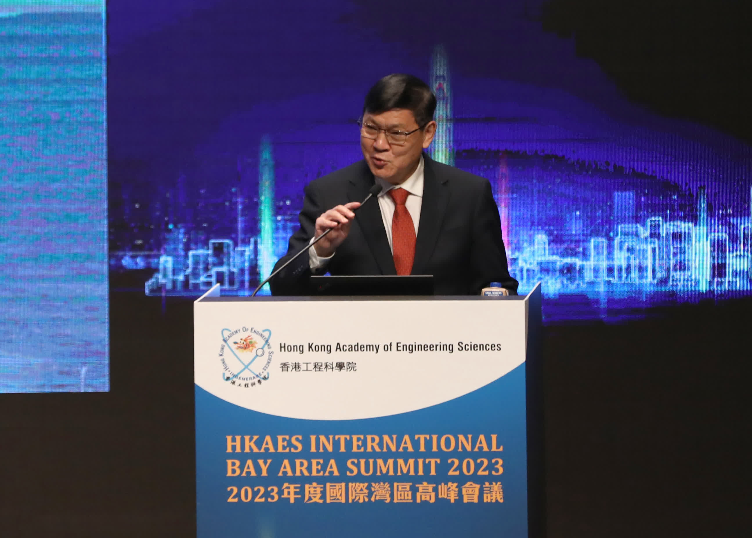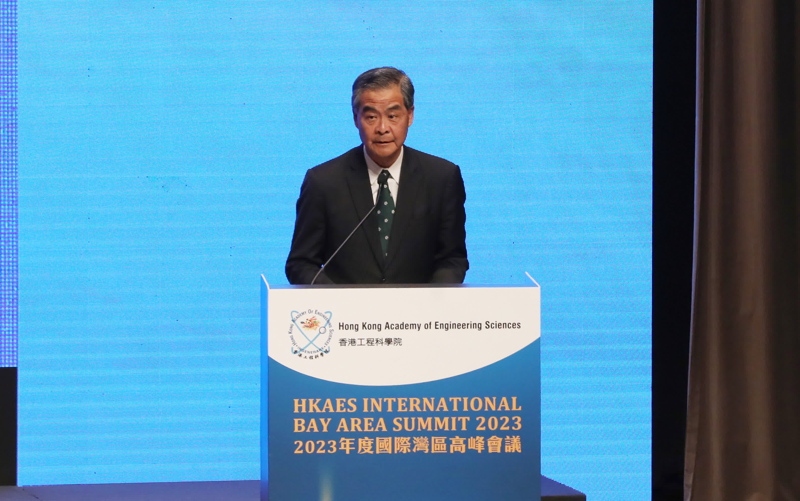 (大公報 記者 鍾怡<文>林良堅<圖>)由香港工程科學院主辦的2023年度國際灣區高峰會議昨天在香港舉辦,全國政協副主席梁振英作峰會演講,香港特區行政長官李家超、科技部副部長張廣軍視頻致辭,香港中聯辦副主任盧新寧出席會議並致辭,中國工程院院長李曉紅做主題報告。在港中國工程院院士,內地、港澳及來自紐約、加州、東京等著名大學、科研機構的專家學者和創科企業代表共200餘人參加。
