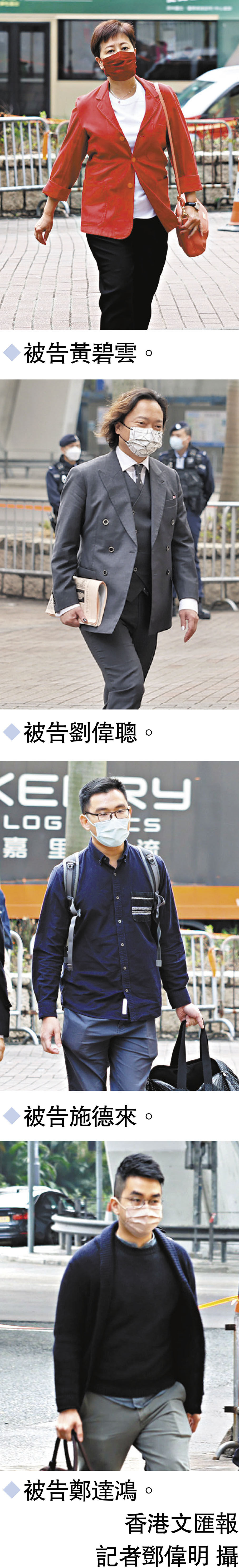 16名不認罪被告,分為吳政亨、鄭達鴻、楊雪盈、彭卓棋、何啟明、劉偉聰、黃碧雲、施德來、何桂藍、陳志全、鄒家成、林卓廷、梁國雄、柯耀林、李予信和余慧明。當中吳政亨、何桂藍、鄒家成、林卓廷、梁國雄和余慧明現正還押。