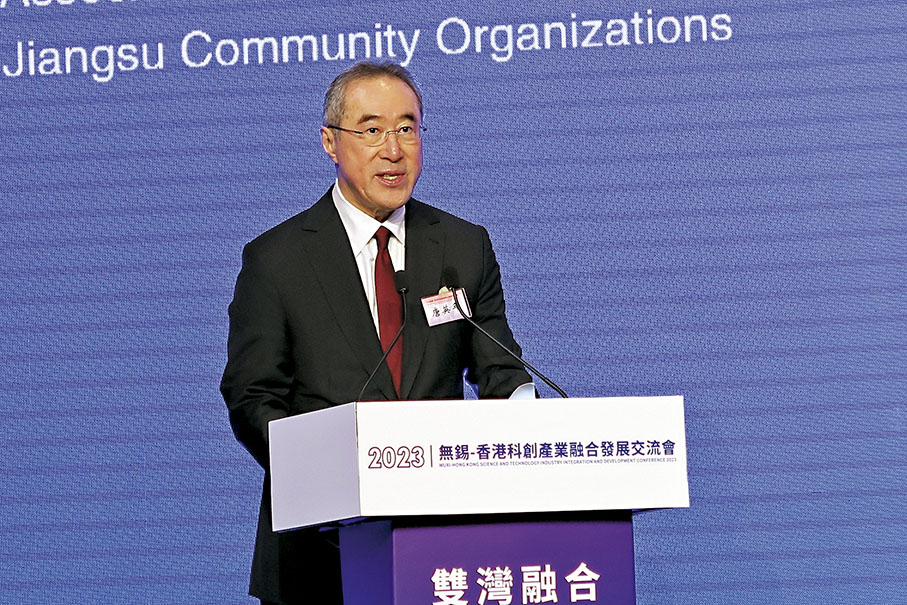 唐英年說,2022年10月,特區行政長官李家超指出,將會推出香港創新科技發展藍圖,從完善科技生產圈、實現再工業化、壯大人才庫、建設智慧香港融入國家發展大局四個方面來制定政策,全力打造國際創新科技中心。「這都將會為香港和無錫的科技產業融合發展奠定堅實的基礎。」