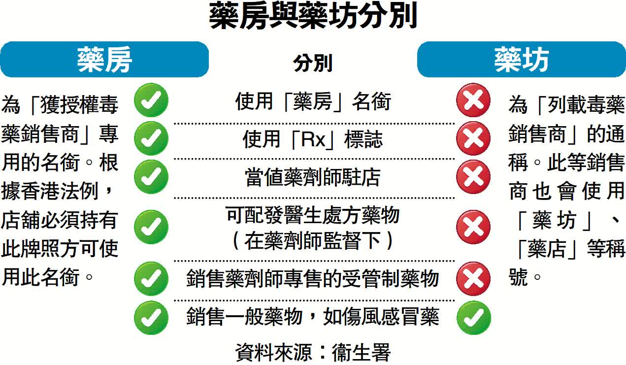 林偉文說,顧客購買藥品前,宜先了解藥品名稱、包裝、價格等信息。若顧客對香港不太熟悉,宜盡量在具規模的連鎖藥店或老字號藥房購買,同時看清楚商店是否有「正」貨標籤,及看清楚是否有註冊藥房的「Rx」標誌。
