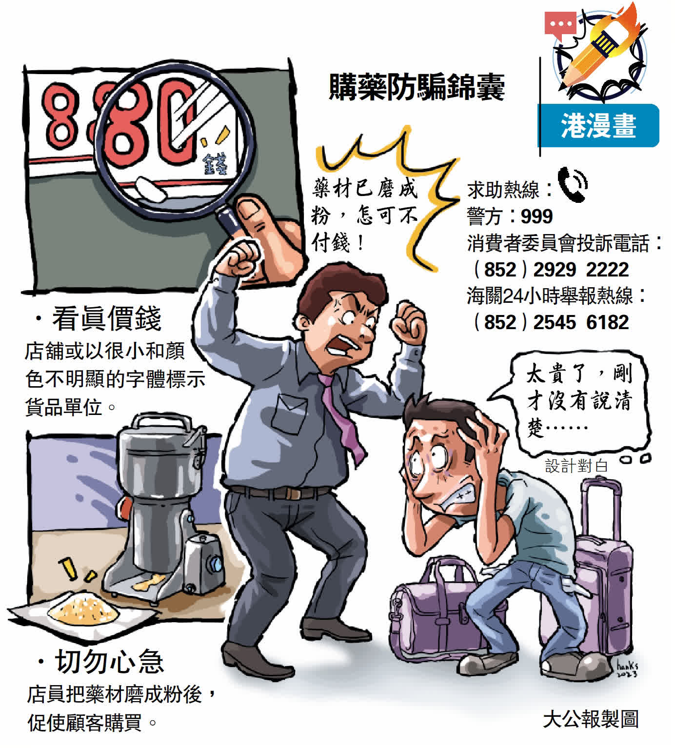 港九藥房總商會理事長林偉文提醒市民及旅客,買藥物前要先確認貨品上是否有明確標示貨品重量及售價,例如多少錢一兩、一錢、一克等。而且部分重量單位,兩地的分法不一,尤其要留意。