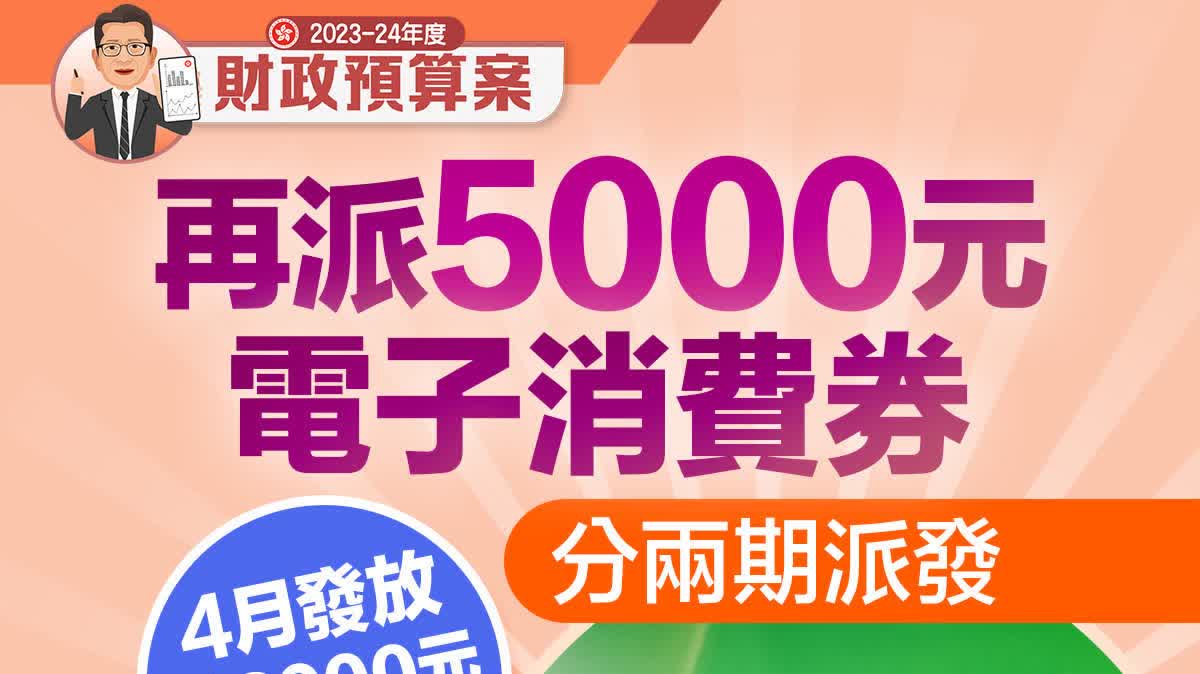 (大公文匯全媒體記者整理)財政司司長陳茂波今日(22日)發表最新一份財政預算案。陳茂波公布,考慮當前經濟、社會民生及政府財政狀況後,今年會再向每名合資格的18歲或以上永久性居民及新來港人士,分兩期發放總額5000元電子消費券。參考過去消費券派發資格等,點新聞今次為讀者預期今次申請資格等詳情,快來睇下!