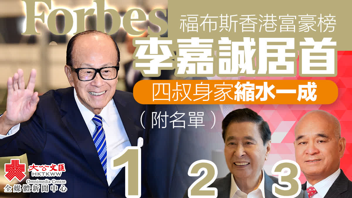 大公文匯全媒體報道,福布斯香港富豪榜公布,李嘉誠再蟬聯香港首富,身家拋離第二位近700億港元。