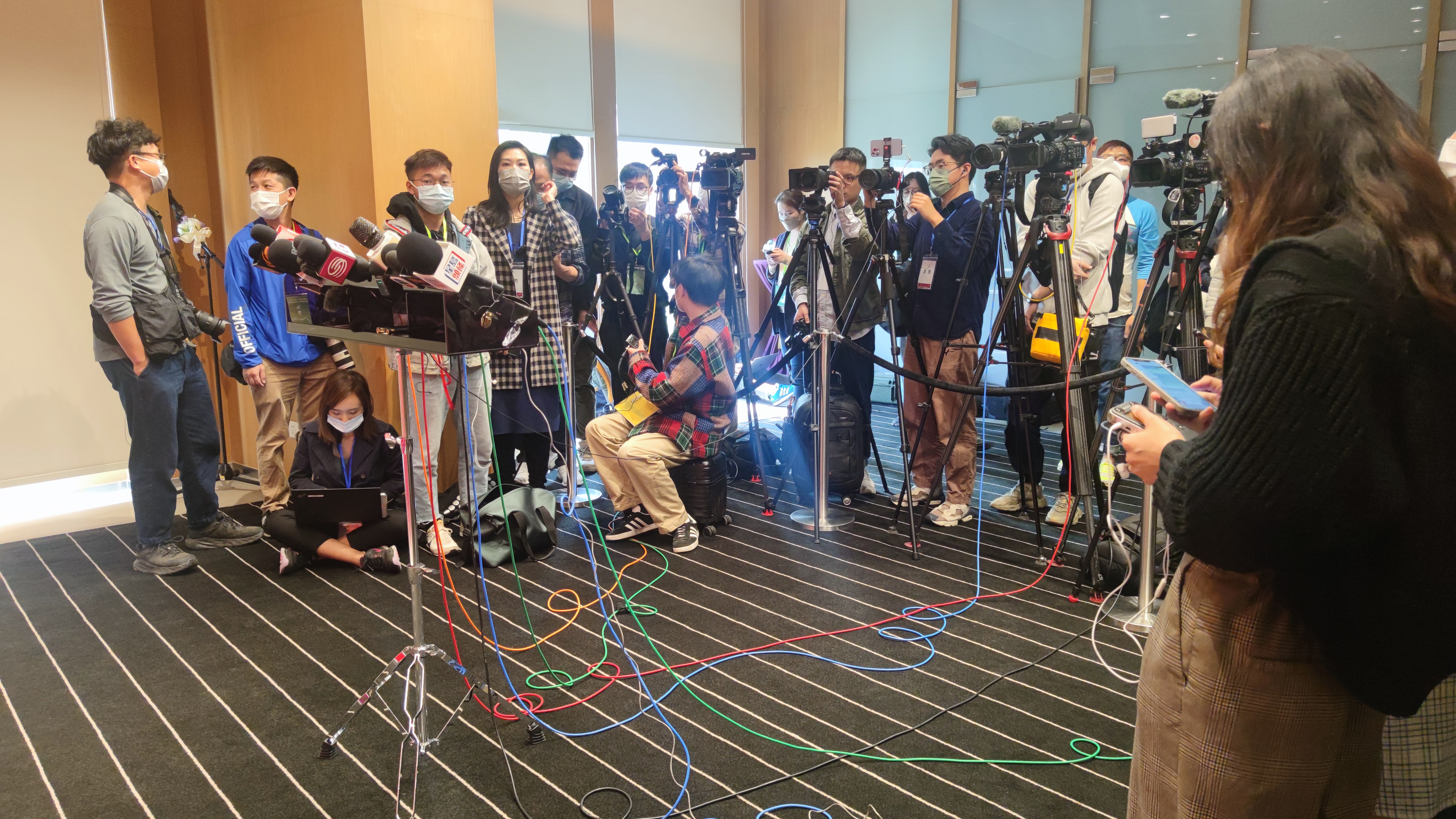 在李家超傳媒見面會現場,大灣區媒體記者難得地濟濟一堂,攝影攝像設備擺得密密麻麻,咔咔嚓嚓的快門聲此起彼伏,暌違多年的熱鬧繁忙的傳媒工作場面又重現眼前。