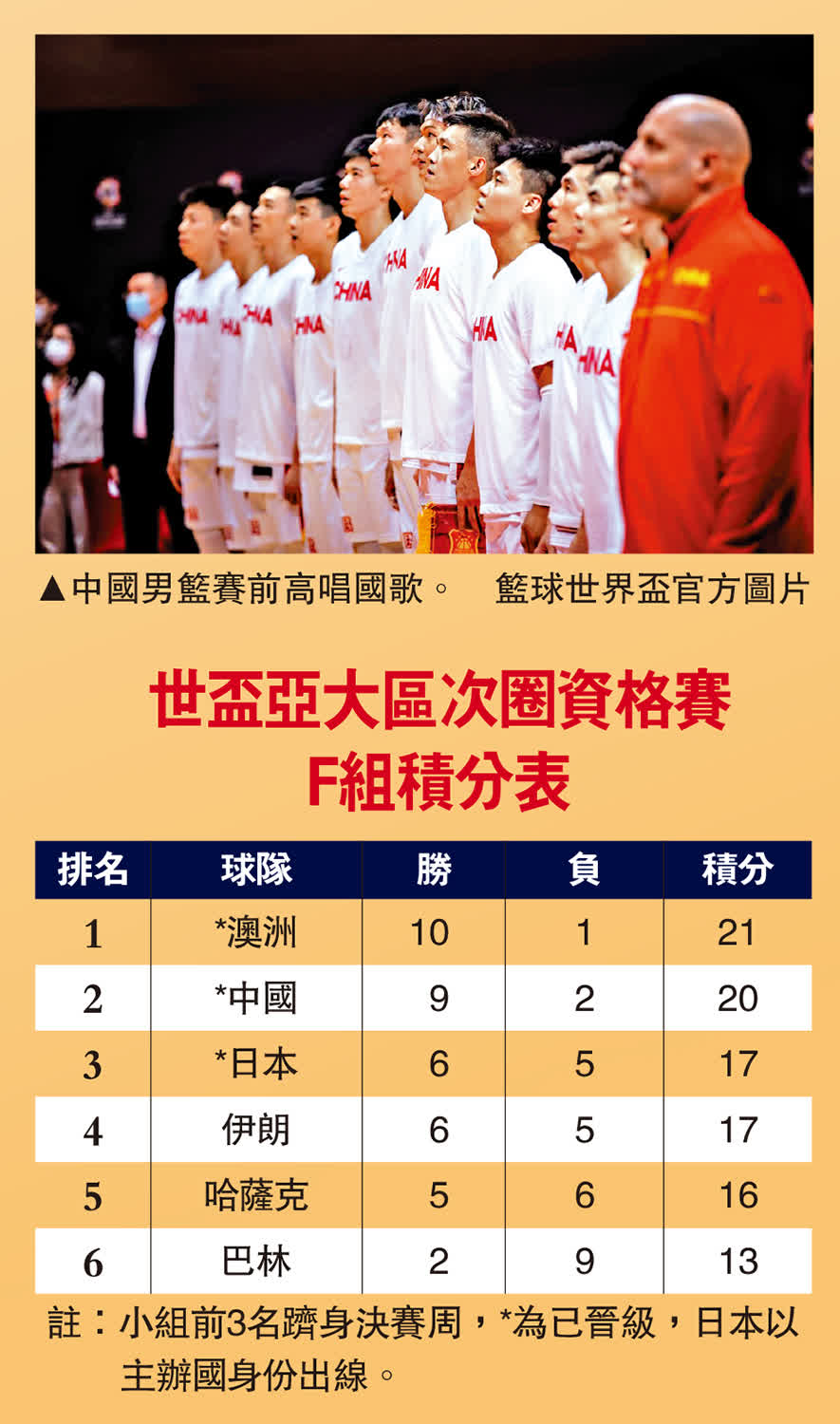 「大魔王」周琦昨晚發威,率中國男籃於荃灣體育館上演的世界盃亞大區次圈資格賽F組,以71:59輕取哈薩克。這名身形比過往更健碩的中國第一中鋒,錄得同屬全場最高的16分和12個籃板,他賽後感謝球迷熱情打氣,令到自己更投入比賽。國籃主教練喬爾傑維奇,在領軍出戰國際大賽的首仗取得「開門紅」。
