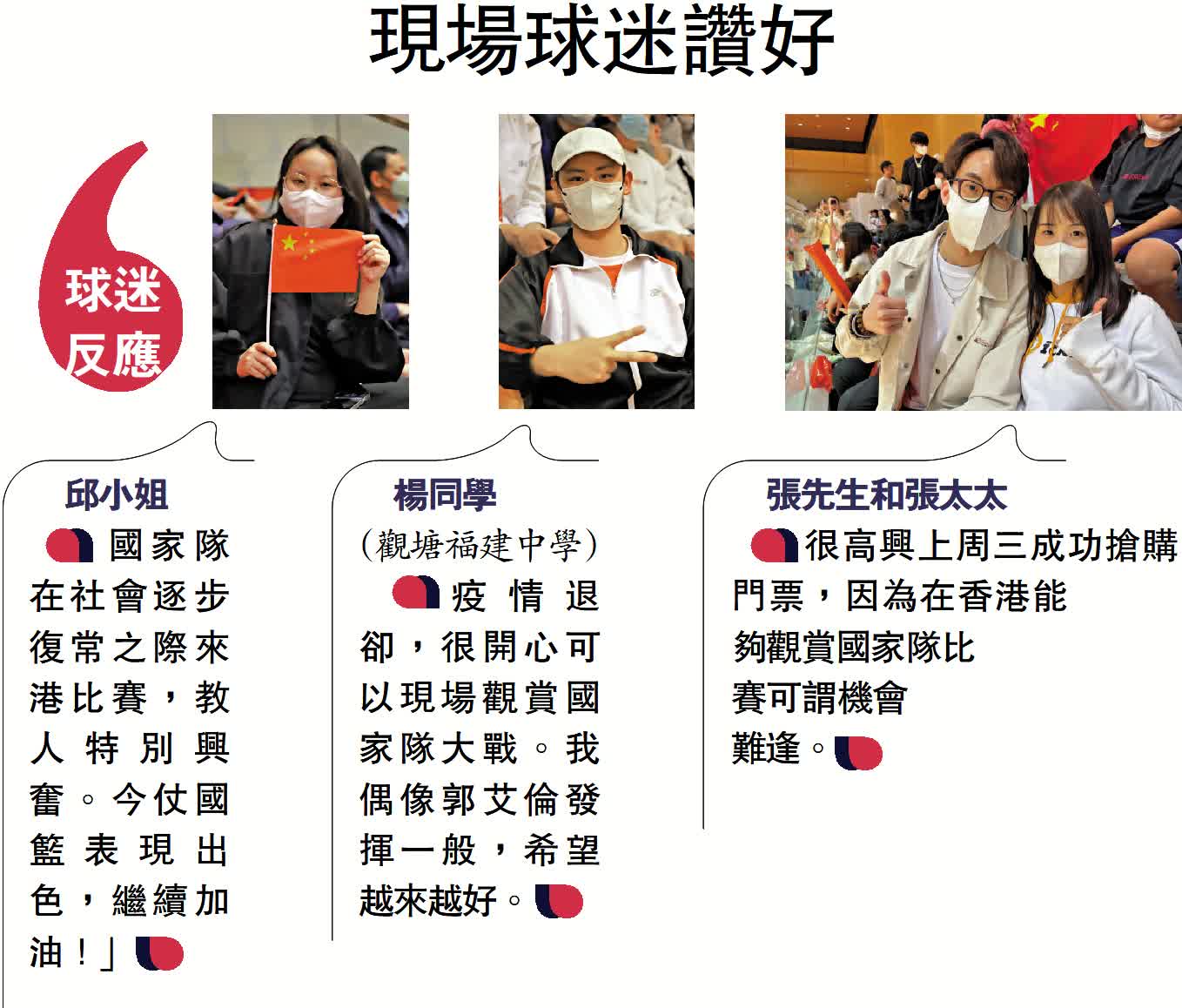 隊員們表示香港作為國家隊主場,設施完善、服務周到,現場球迷的吶喊助威讓他們切實感受到了主場的優勢和氛圍,感謝中央駐港機構和特區政府對球隊的關心支持。據悉,中國男籃將於2月26日對陣伊朗,隨後離港。