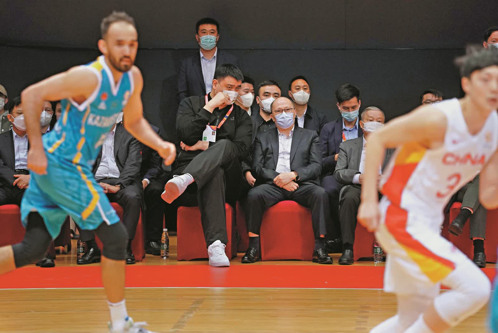 (大公報記者 黃智佳)2月23日晚,中國男籃在香港荃灣體育館參加2023年男籃世界盃亞大區預選賽,首戰對陣哈薩克斯坦隊。這是香港首次作為主場舉辦中國男籃的比賽。中央政府駐港聯絡辦主任鄭雁雄到場觀賽並看望隊員,特區政府政務司司長陳國基、外交部駐港公署副特派員潘雲東,以及國際籃聯終身榮譽主席程萬琦、中國籃協主席姚明和副主席郭振明等參加活動。