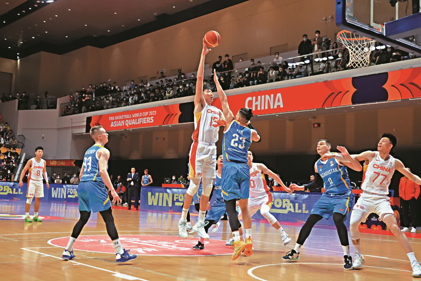 哈薩克在第3節反擊,命中率明顯提升,單節入了三個3分球,追至40:59進入最後一節。戰至最後3分鐘左右,哈薩克只落後12分,此時周琦連入兩球罰球穩定軍心,最後國籃保持12分優勢勝出。雖然國家隊賽前已晉身決賽周,但喬爾傑維奇領軍旗開得勝,可說是有個好開始。落敗的哈薩克仍未絕望,因為伊朗同日作客61:96慘敗給日本,故哈薩克和伊朗在最後一輪將爭小組最後一個出線資格。