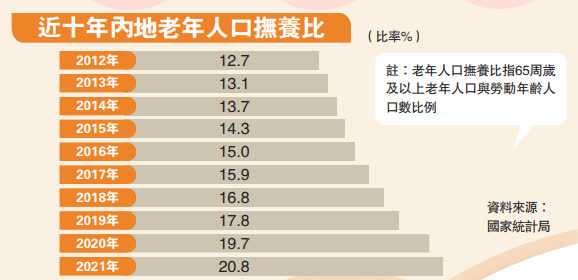 在天平的另一端,養老問題同樣引人關注。據統計,目前內地60歲及以上人口達2.8億,佔全國總人口的19.8%,其中65歲及以上人口突破2億。