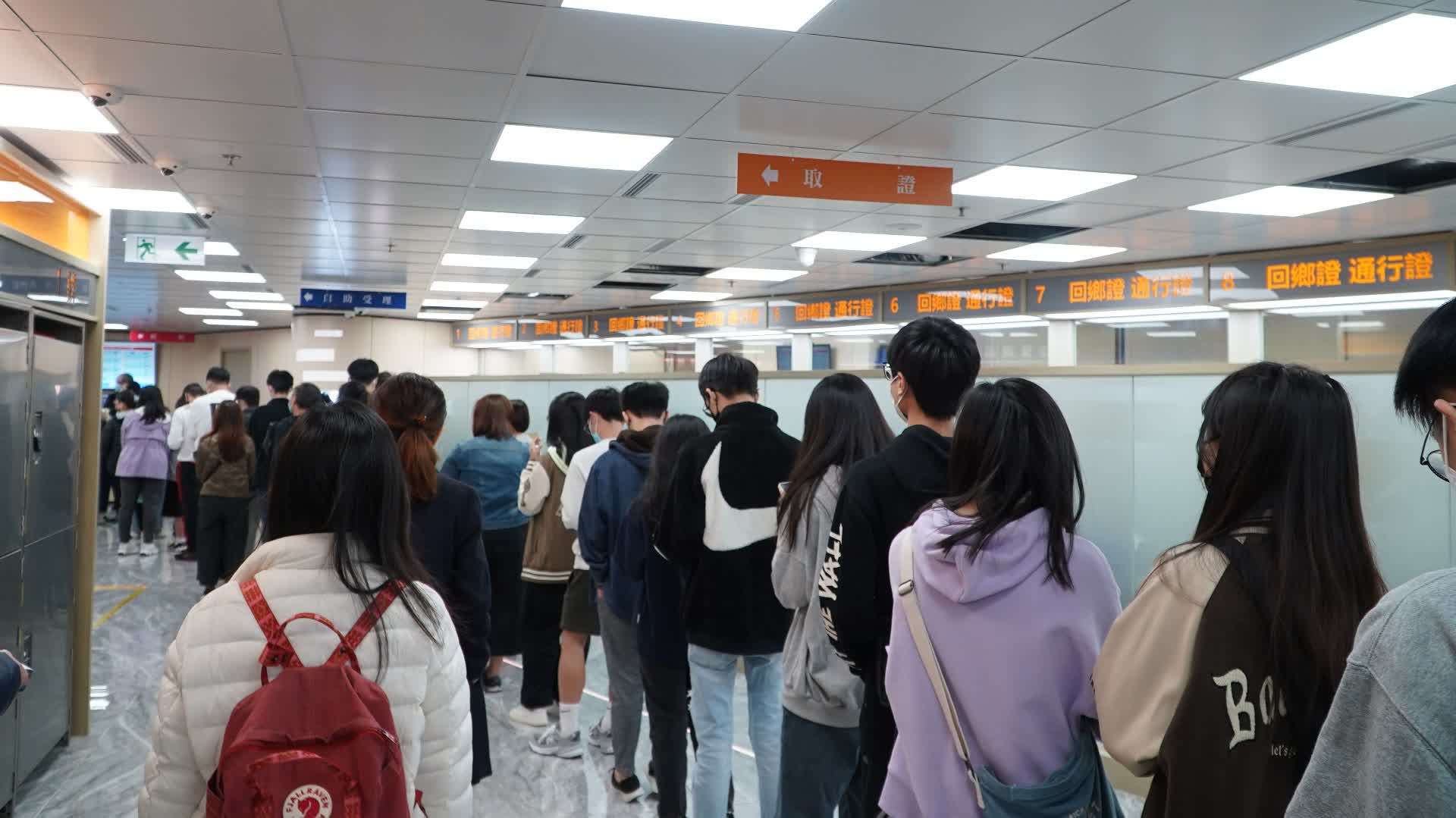 就讀於聖貞德中學的曾同學回鄉證快要過期,早前通過學校預約,今早9時許來到後,先排隊拍照,需時約20分鐘,再排隊辦理證件需時約30分鐘,他希望可以再快一點。他指,疫情期間「好耐冇出去玩」,兩地恢復通關後他已經迫不及待回到內地,對於學校將舉辦的交流團他亦十分期待。