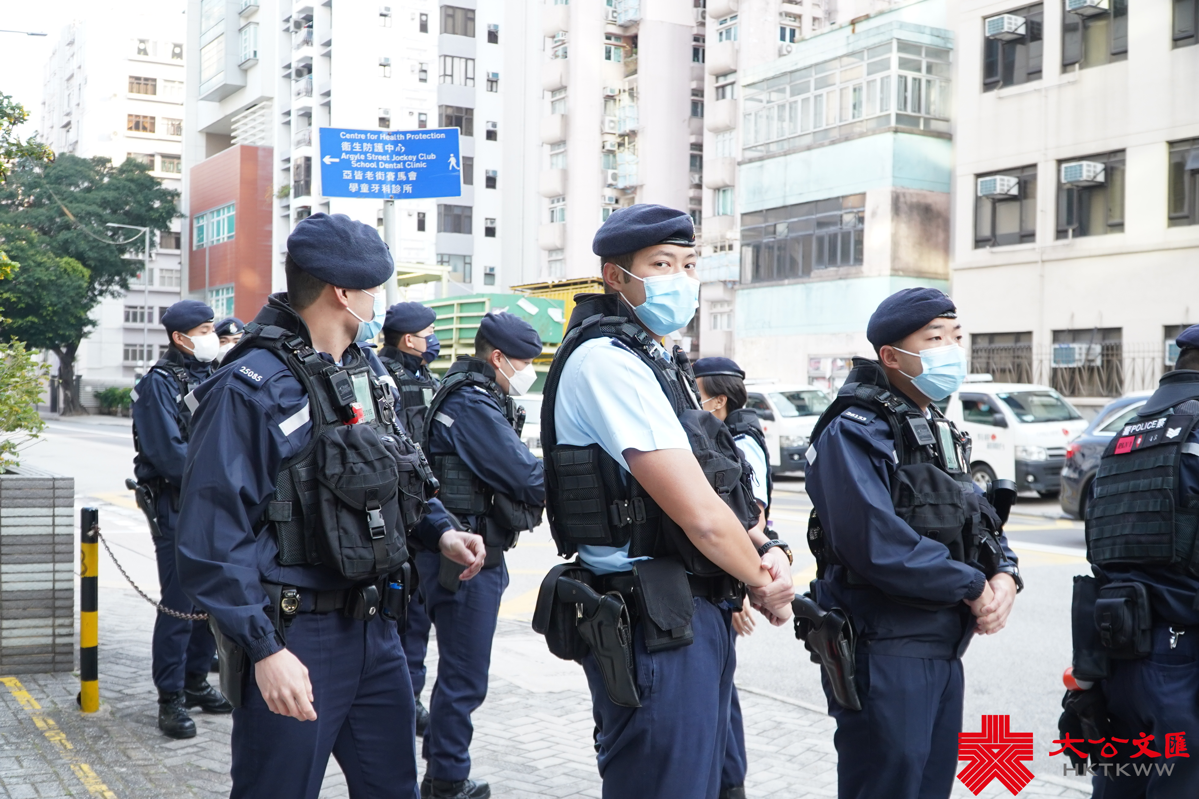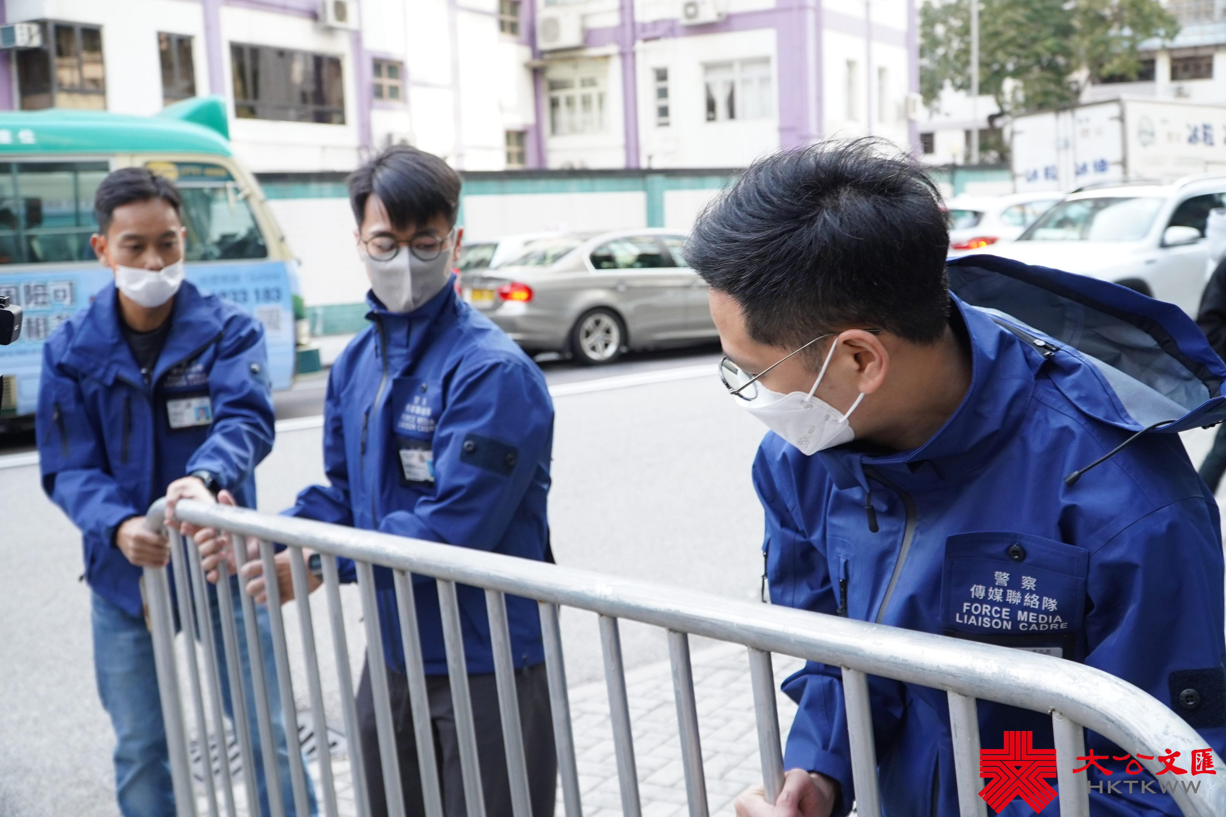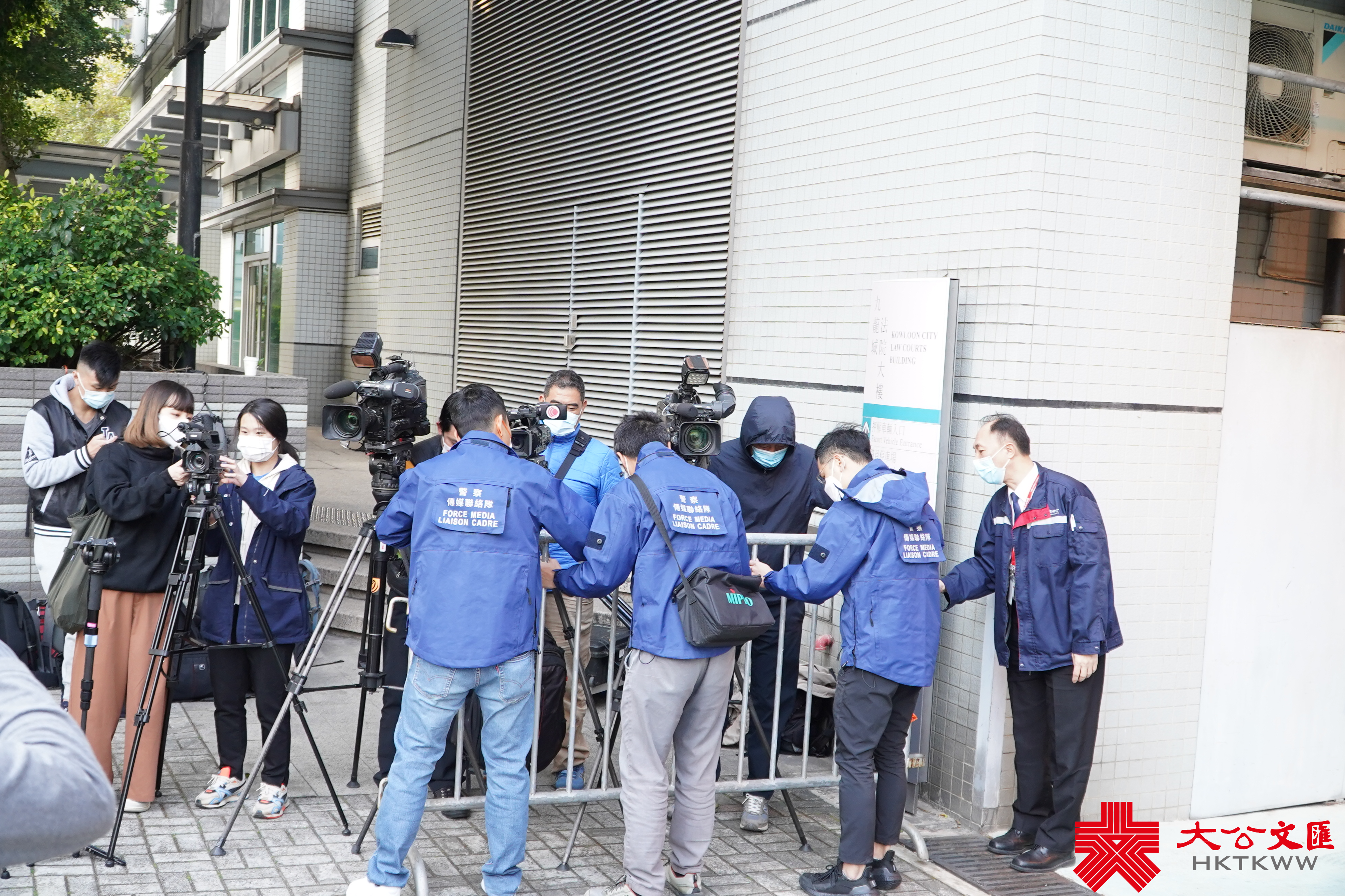 早上8時,已經有大批傳媒到法院外等候,其間大批警員到場,並從鐵閘內搬出鐵馬擺放在兩側傳媒前方。8時30分左右,疑犯黑布蒙頭,由囚車押送至九龍城裁判法院。