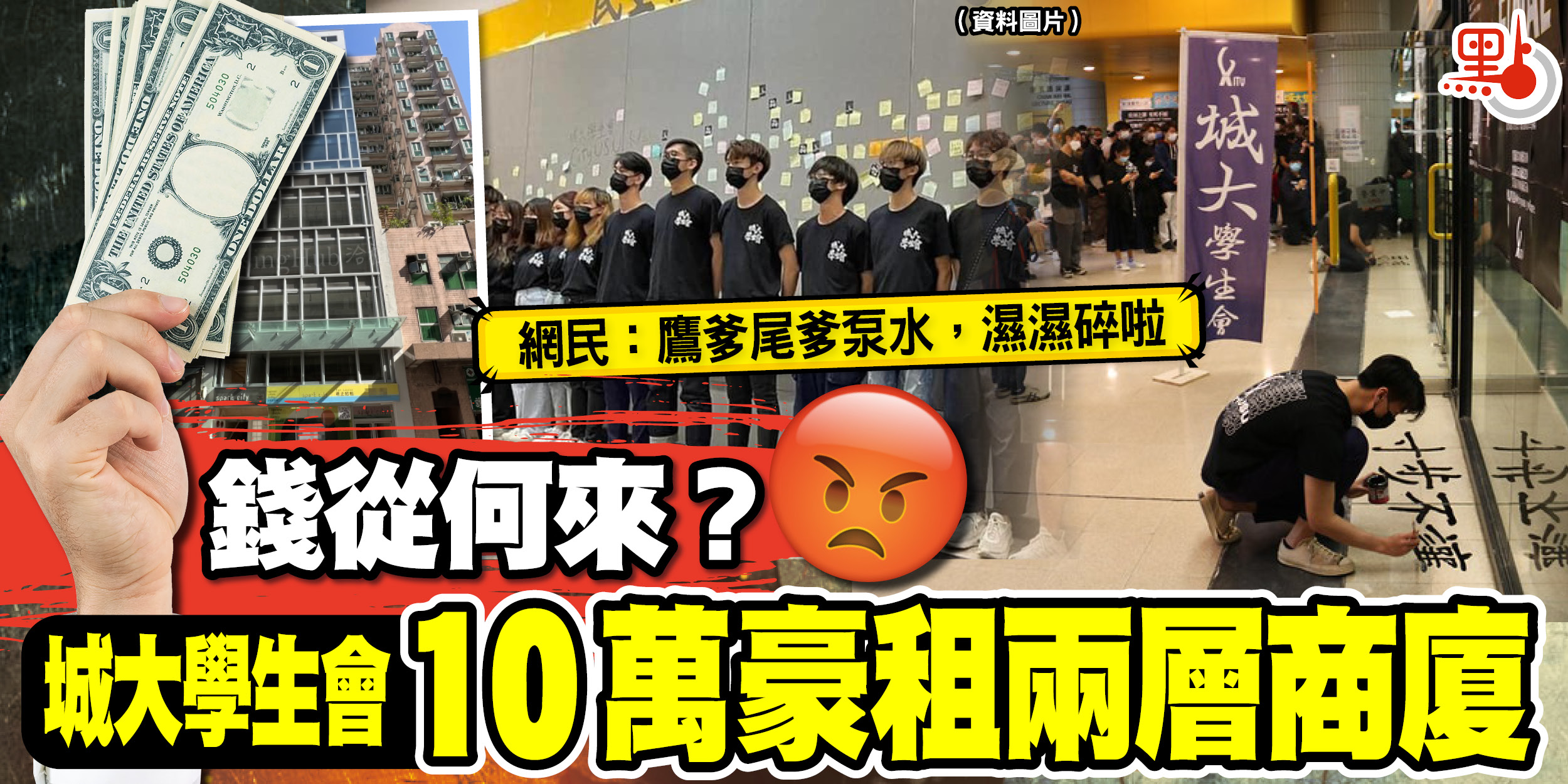 大公文匯全媒體報道:城大學生會因長期賬目混亂,去年2月遭校方收回會址後,近日租用深水埗的商廈作為新會址,據悉,每月開支近10萬元,令網民不禁問:「錢從何來」!