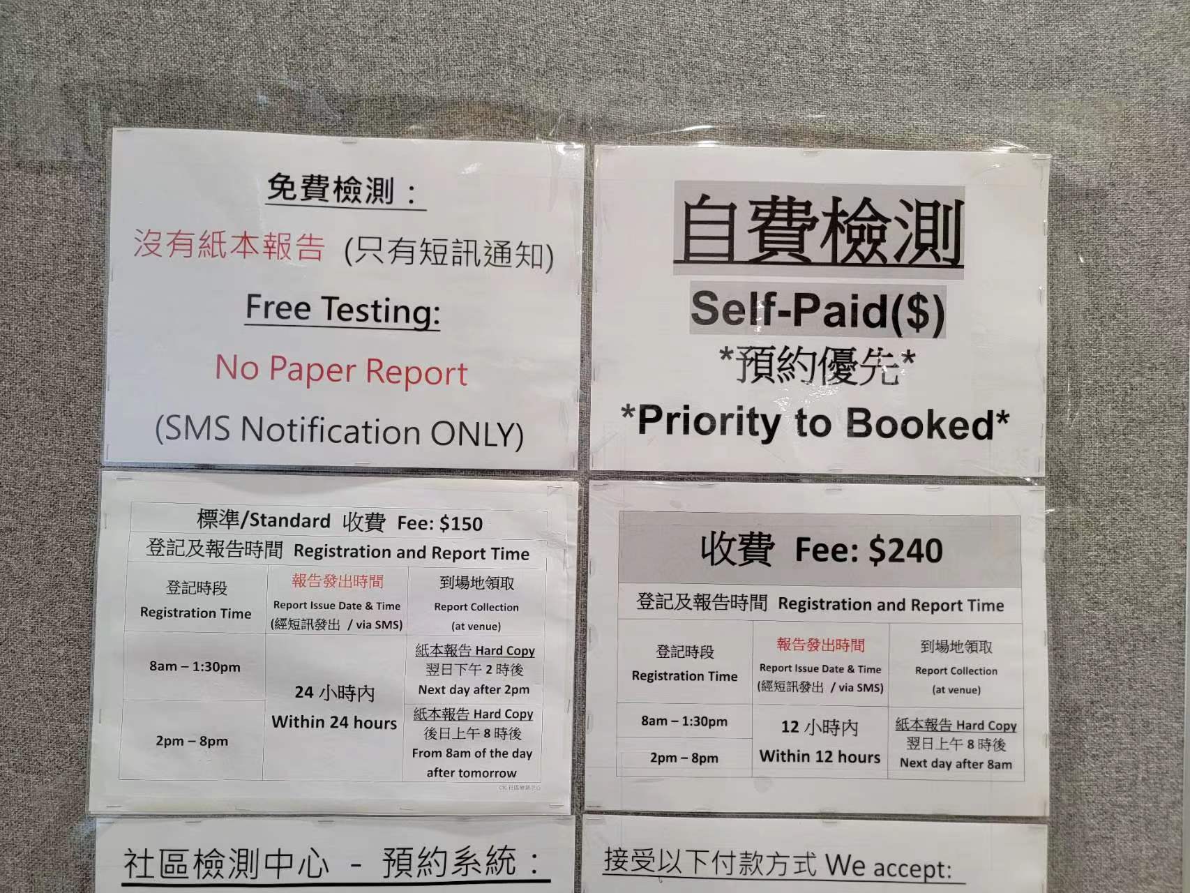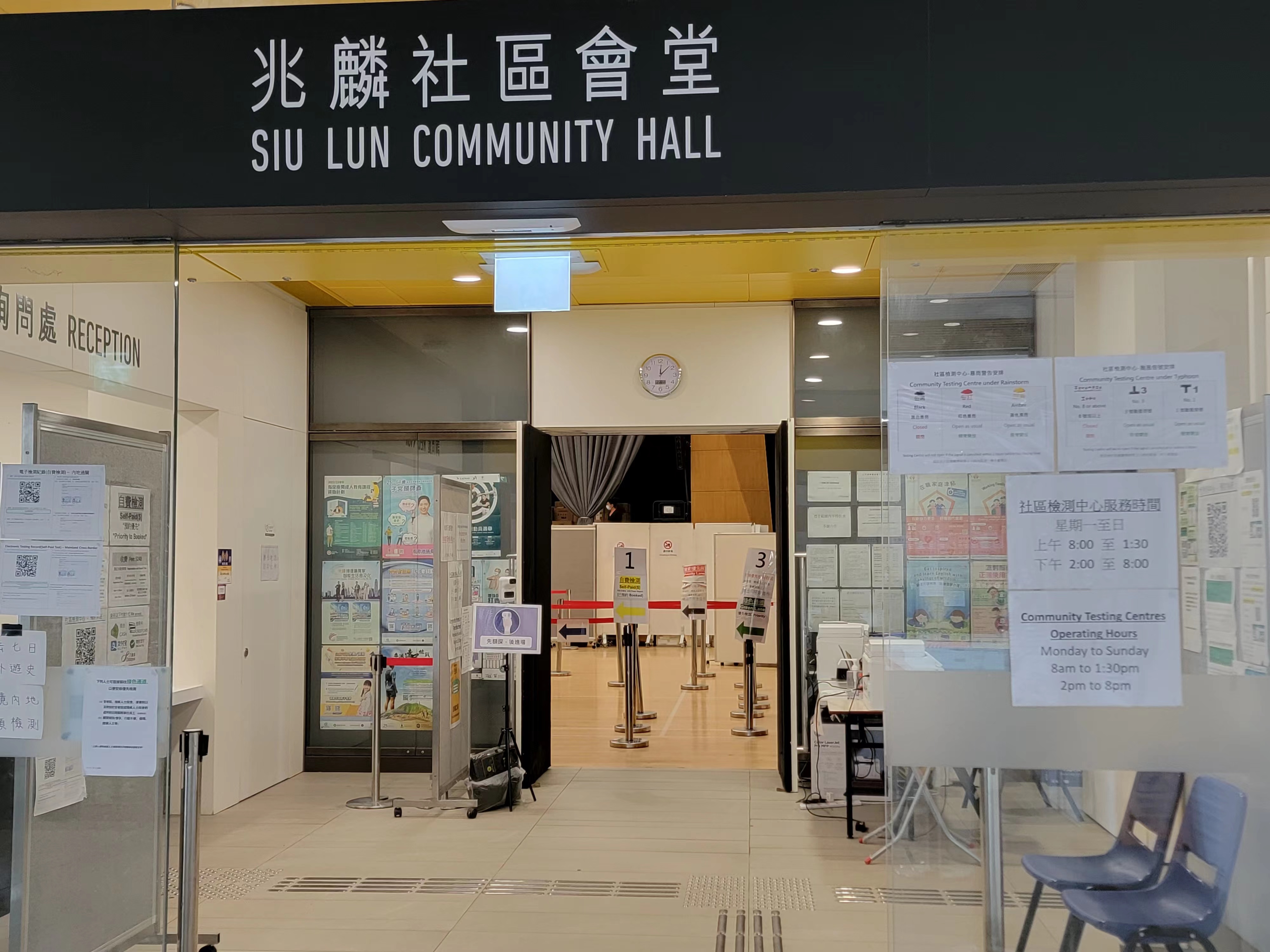位於兆麟社區會堂社堂是21間維持檢測中心自費檢測的中心之一。記者到場後發現仍有少量市民前來排隊。職員向記者表示,由明天起,中心服務時間將由原來的朝八晚八改為朝十晚八,市民需自費檢測,費用分為是150元(24小時內取報告)及240元(12小時內取報告)。