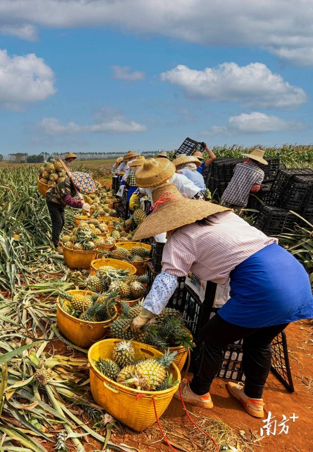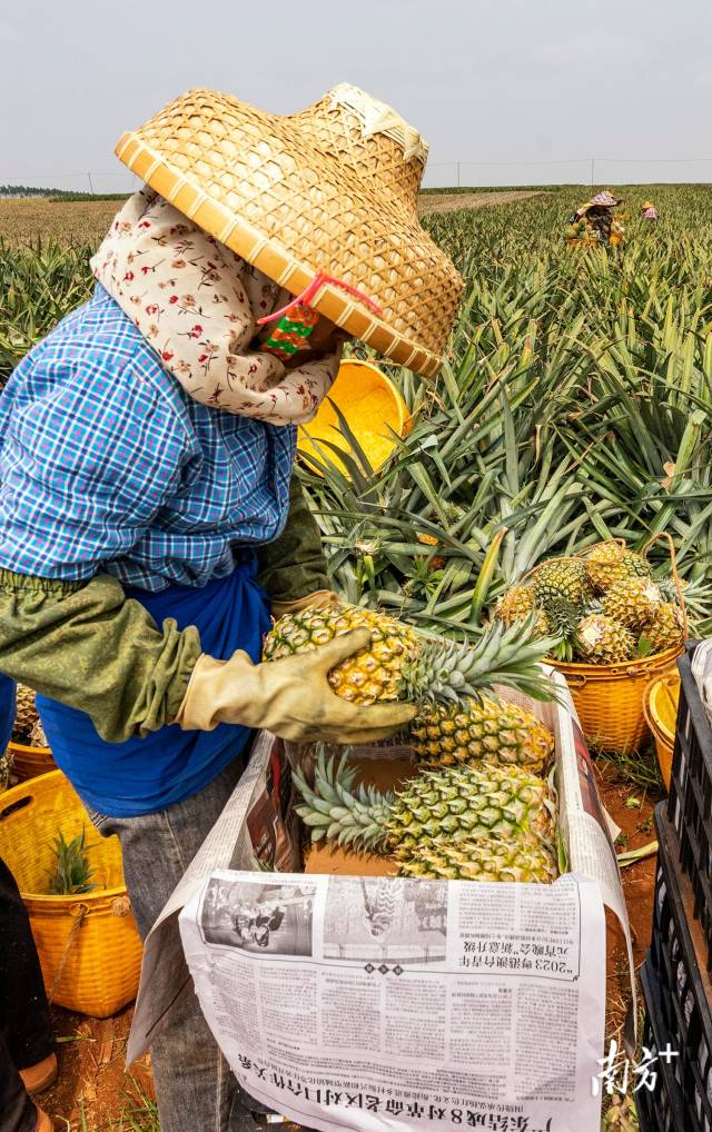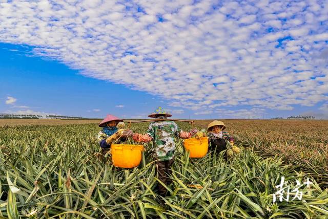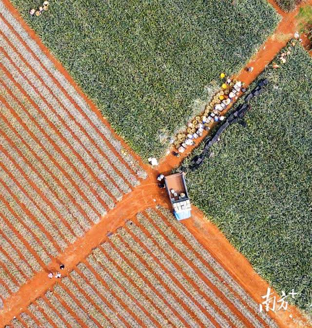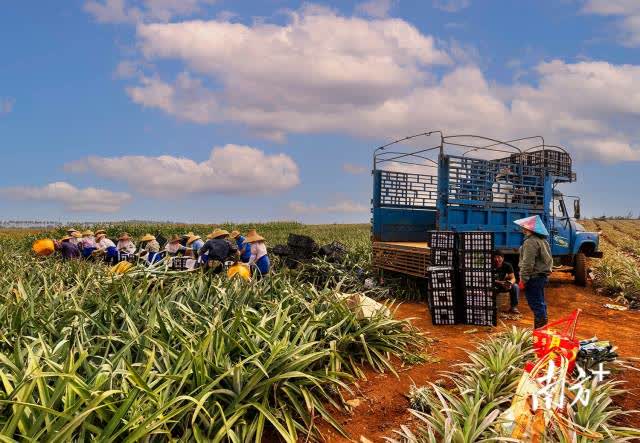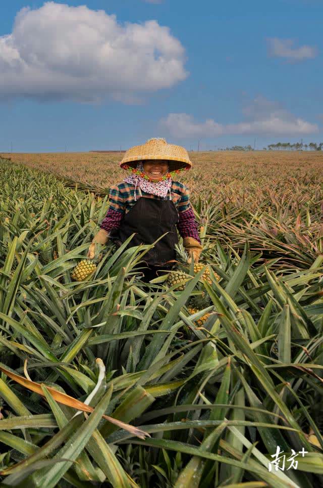 走進廣東省湛江市徐聞縣的菠蘿產區,恍惚來到了北方平原,這裏連片種植的菠蘿地蒼茫壯闊、一望無際,縱橫交錯、色彩斑斕,構成了一幅獨具魅力的熱帶生態農業壯美畫卷。