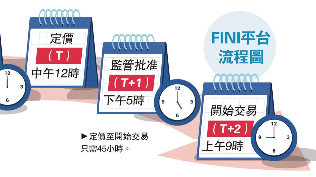 在FINI正式推出前,本港IPO仍會繼續使用原有的CCASS系統,正式推出日或之後所有IPO均會強制性使用FINI進行上市流程。由於FINI能利用高效的數字協作工具加快IPO結算速度,以降低各方的市場風險敞口,日後新股從定價至掛牌所須時間將由原來的「T+5」縮短至「T+2」,藉此令投資者更早接觸到新的上市公司,降低市場風險及改善各方的參與效率。而且去年港交所已表示,即使在惡劣天氣警告下FINI仍會繼續運作。但去年港交所初步介紹FINI時則表示,平台推出首階段將不包括後續配售或債券發行的程序。事實上,「T+2」已被港交所視為IPO的標準時間,但若外國公司來港上市並遇上外國的公眾假期,上市申請人可向港交所尋求更長的結算時間表,惟需要在招股書中列出。
