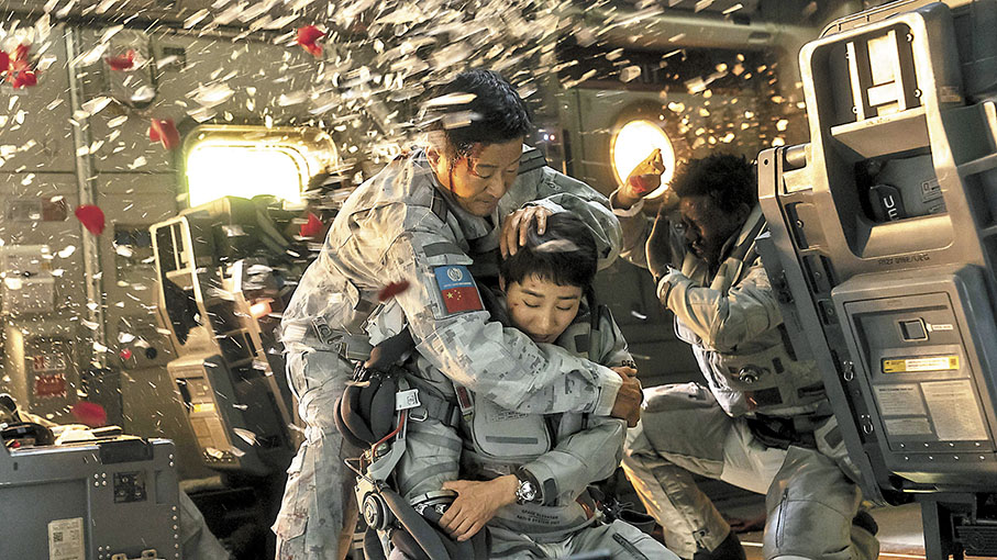 作為一部科幻電影,由太空電梯、行星發動機、量子計算機、太陽風暴、月球危機、數字生命等大量硬科技和未來科技搭建的廣袤空間,一下子便能將觀眾的視野拓展到太陽系之外。與此同時,處於末日災難來臨前夕的地球,正遭遇着人類滅絕文明毀滅的倒計時,全世界不分國別不分族群,借助集體智慧結晶的智能科技手段,推動地球「流浪」,躲過重重危機是唯一出路,又將觀眾從太陽系之外的看客心態,引導到對地球家園安危關切的代入角度。