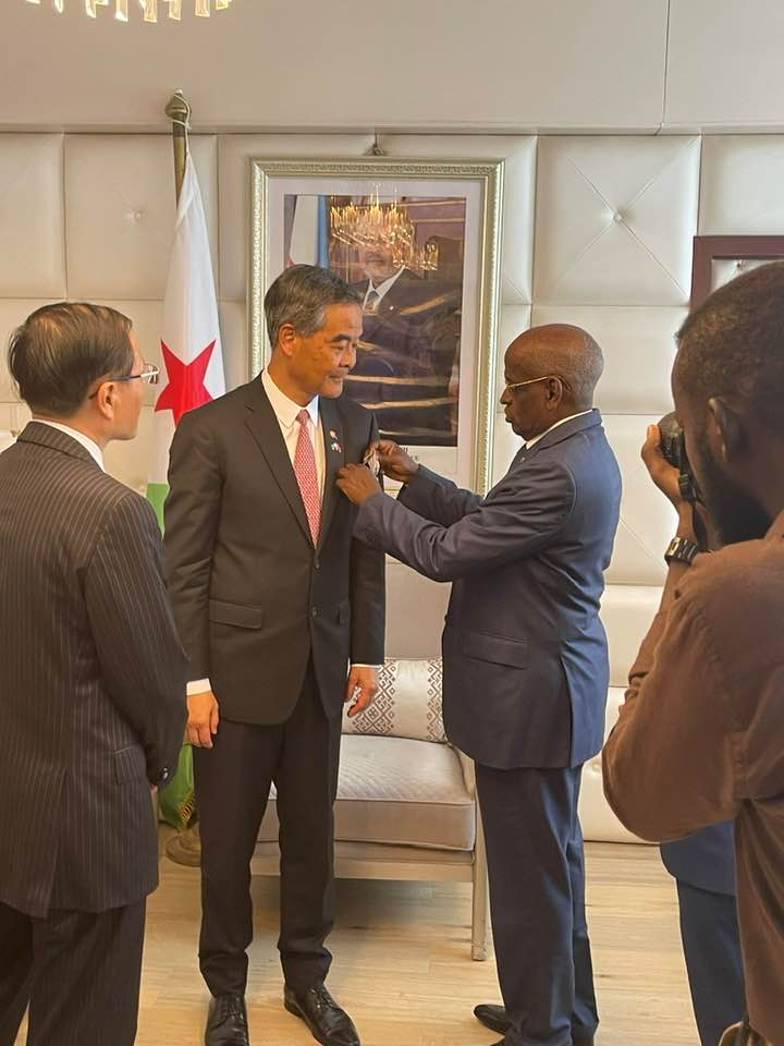梁振英今日(2日)在社交平台發文表示,對於他和共享基金會在吉布提的工作獲得吉布提政府的肯定,感到十分高興,對獲頒授勳章感到榮幸,他特別感謝共享基金會的同事、山西省衞建委、山西省醫療隊及當地中資機構的支持。
