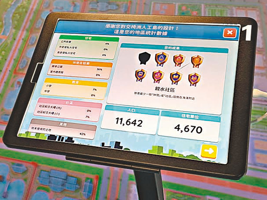 為加深公眾對交椅洲人工島的了解,特區政府由上月9日起在中環展城館及東涌社區聯絡中心設專題展覽,設有多塊展板及大型實體模型介紹交椅洲人工島的填海範圍、概括土地用途、策略性運輸基建及可能融資選項的初步建議,亦有互動遊戲供市民參與模擬規劃人工島的社區設施等。連同一些巡迴展覽,至今共吸引約9,000人次入場。