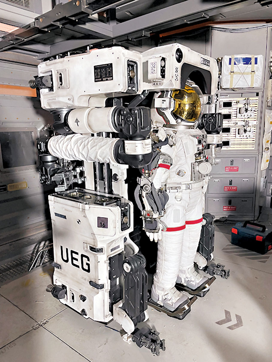 《流浪地球2》中高頻出境的特殊道具,如無人機干擾槍、智能量子計算機550A和550C、航天員載人機動裝置等均產自深圳,由美術組製作總監楊旭和他的團隊以工業設計邏輯和工業化生產流程製造。是否在鏡頭拍不到的地方,不做這麼精細也可以?「我們做的工作就是創造真實。就像產品的生產日期一樣,該有的都會有,這就是一個工作態度的問題。」楊旭說,真實的產品,正面、反面,裏裏外外看不到的地方應該是一樣精緻的。就像電影中的干擾槍,它的扳機能扣動,電池能拆下,整個槍拆完有幾百上千個零件。「只有做到真實,觀眾看電影時才有代入感。」