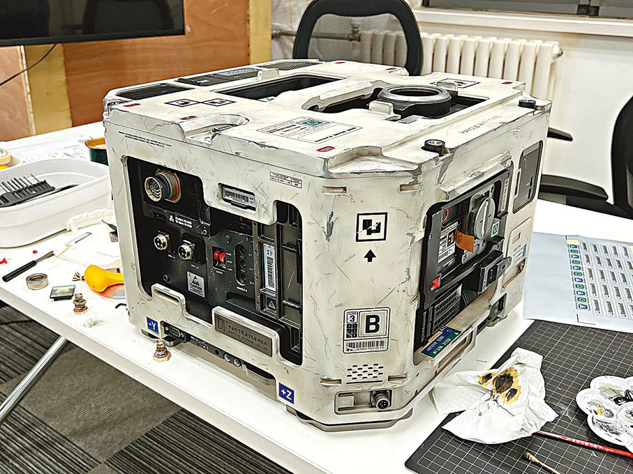 打開電腦裏的三維製作軟件,楊旭向香港文匯報記者展示了團隊在《流浪地球2》裏參與的特殊道具製作圖。以最受網友喜愛的航天員載人機動裝置(MMU)為例,在收到電影美術設計組給過來的2D圖像後,楊旭需要將其改為3D結構圖,仔細畫出裏面的每一個零件。「這個道具有2,000多張零件圖,光結構設計我們就做了一個多月,而生產周期還不到3周。」