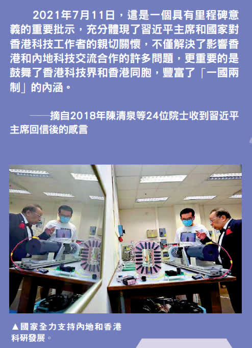 「我沒有想到,習近平主席這麼快就作出了重要批示,勉勵香港科技工作者融入國家建設,並責成中央有關部門予以落實國家科研經費過境香港使用等問題。」陳清泉十分感慨,掣肘兩地科研交流的壁壘終被破除,粵港澳大灣區的科技創新邁上一個新的台階。