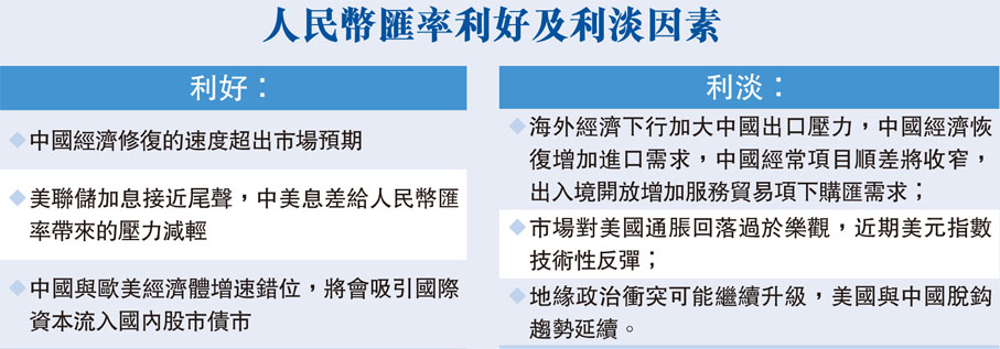 瑞銀首席中國經濟學家汪濤也指出,內地經濟復甦更為強勁,特別是由消費者和企業信心提振推動的復甦,加上美債收益率的大幅下降,可能推動人民幣兌美元在年底前走強至6.5-6.6。