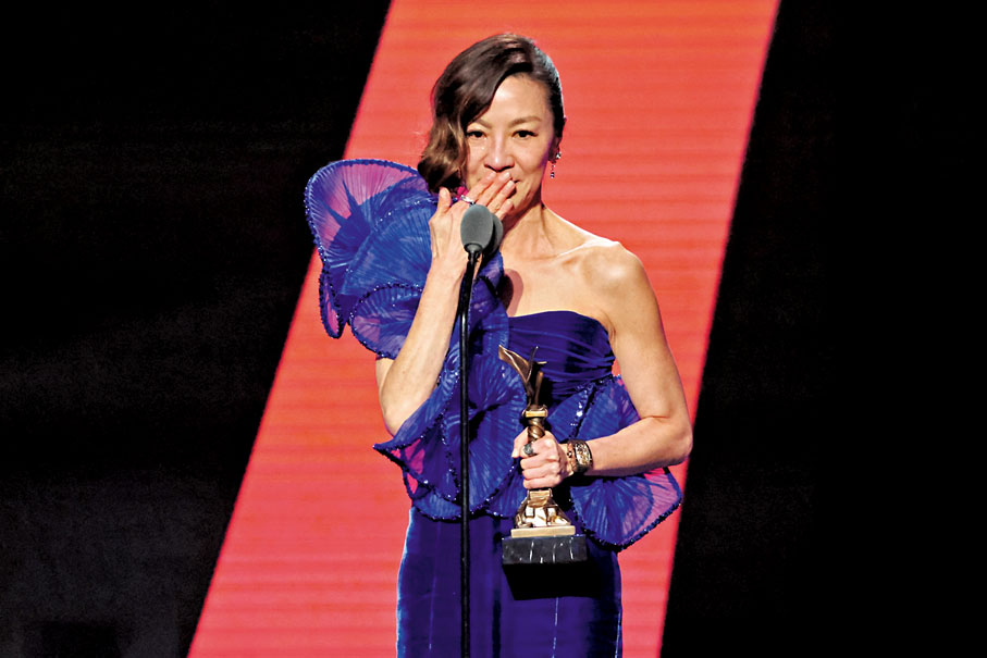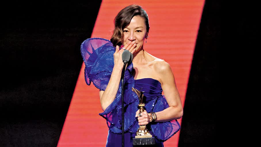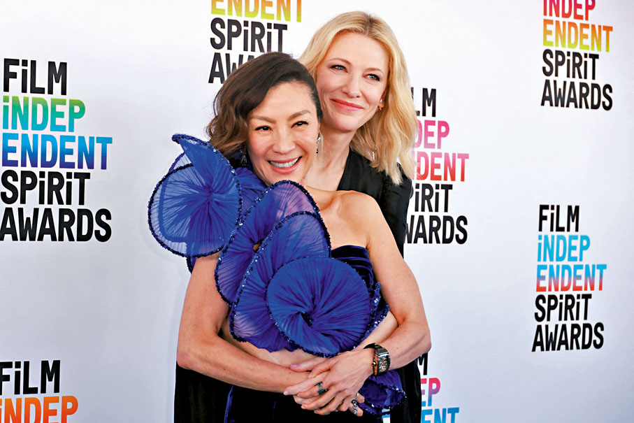 香港文匯報報道,有「獨立電影界奧斯卡」之稱的《第38屆獨立精神電影頒獎禮》(Film Independent Spirit Awards)前日在加州舉行,楊紫瓊再憑《奇異女俠玩救宇宙》(下簡稱:《奇異女俠》)擊敗姬蒂白蘭芝(Cate Blanchett)獲得最佳主角獎。