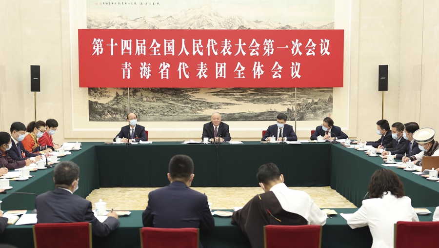 王黎明、索南丹增、許慶民等代表先後發言。蔡奇認真聽取大家發言,不時同代表們交流。蔡奇表示,李克強總理所作的政府工作報告,體現了黨中央部署要求。贊成政府工作報告和立法法修正草案。
