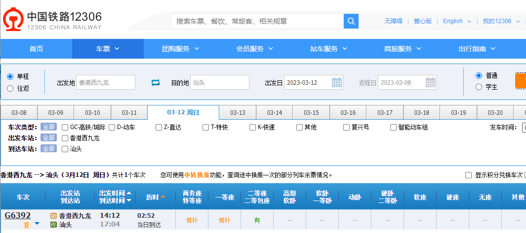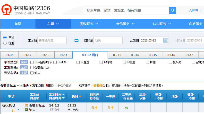 大公文匯全媒體報道,高鐵香港段原定將於本周六(11日)起恢復往汕頭、潮汕等14個長途站點的列車服務,並於昨日(7日)開始售票。惟有市民發現西九龍站往汕頭最早要到周日(12日)才有車次。港鐵其後確認,由於內地車務調動,往返汕頭的高鐵列車服務會延至周日起恢復。