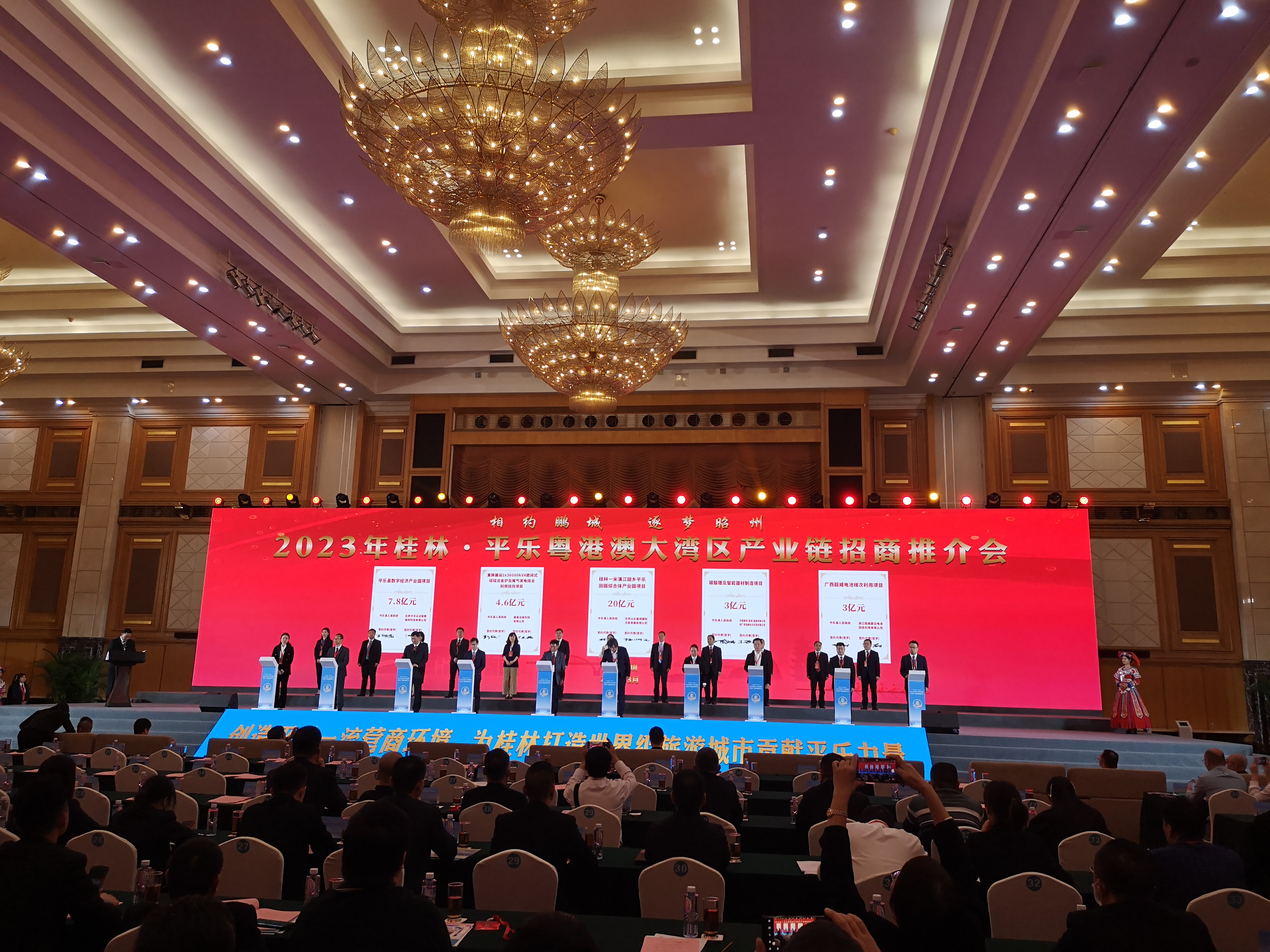 (大公文匯網 記者 石華、蘇徵兵)3月8日,「2023年廣西桂林·平樂粵港澳大灣區產業鏈招商推介會」在深圳舉行,來自北京、山東、浙江、廣東、廣西等10個省(自治區)和香港特別行政區的159家企業代表參加此次推介會。20家企業現場簽約,簽約總金額121.8億元,項目涵蓋智能製造、機械製造、生態種養、生態旅遊、醫美產業、汽車製造等行業和項目。