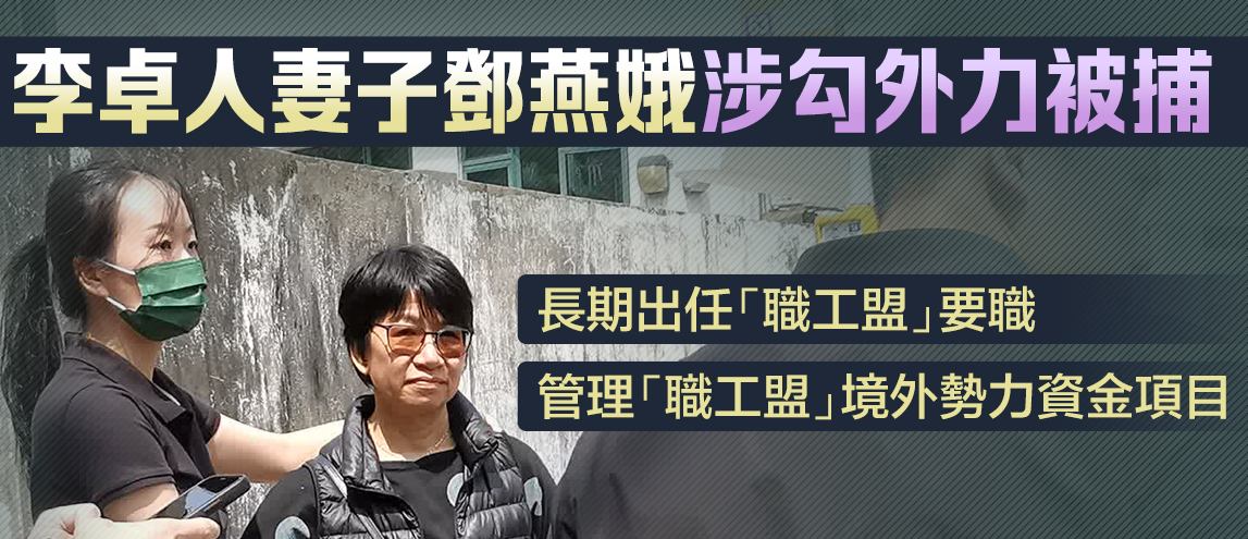 國安處今日在港島區採取執法行動,拘捕一名65歲女子,她涉嫌干犯香港國安法第二十九條「勾結外國或者境外勢力危害國家安全」罪。該女子是已解散的反中亂港組織「支聯會」前主席、前職工盟秘書長李卓人妻子鄧燕娥,