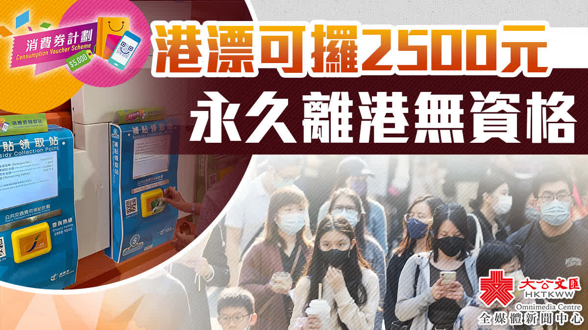 具體來講,以獲發5000元消費券的合資格人士為例,政府會利用2022年登記時所搜集的資料,在4月16日向成功登記的市民發放第一期3000元消費券,7月16日向合資格市民發放第二期、餘下2000元消費券;獲發半額消費券的市民,政府同樣會利用去年所搜集的登記資料,在4月16日向發市民發放第一期1500元消費券,7月16日發放第二期1000元消費券。當局強調,若市民已經離港,或有意圖永久離開香港,將失去領取消費券的資格。