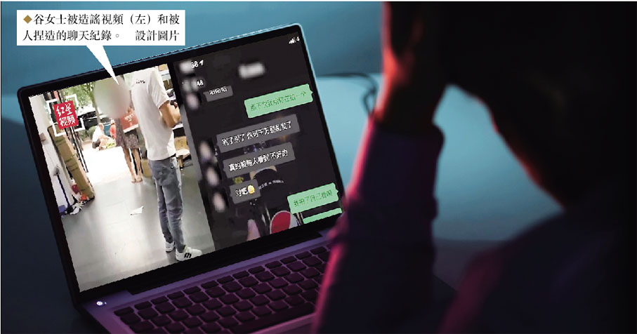 改變一個人的命運需要多久?在杭州女子谷女士的故事裏,這個答案是9秒鐘。2020年7月7日,28歲的谷女士像往常一樣,下班後到小區附近的快遞驛站取快遞,不料被人偷拍了一段9秒鐘的視頻,隨之而來的變化讓她始料未及。「寂寞少婦出軌快遞小哥」——一段莫須有的低俗劇情在互聯網中瘋狂上演,郎某、何某偽造的聊天紀錄配上谷女士的視頻,被相繼擴散到110餘個微信群和其他網絡平台,後面緊跟着大量的淫穢評論。