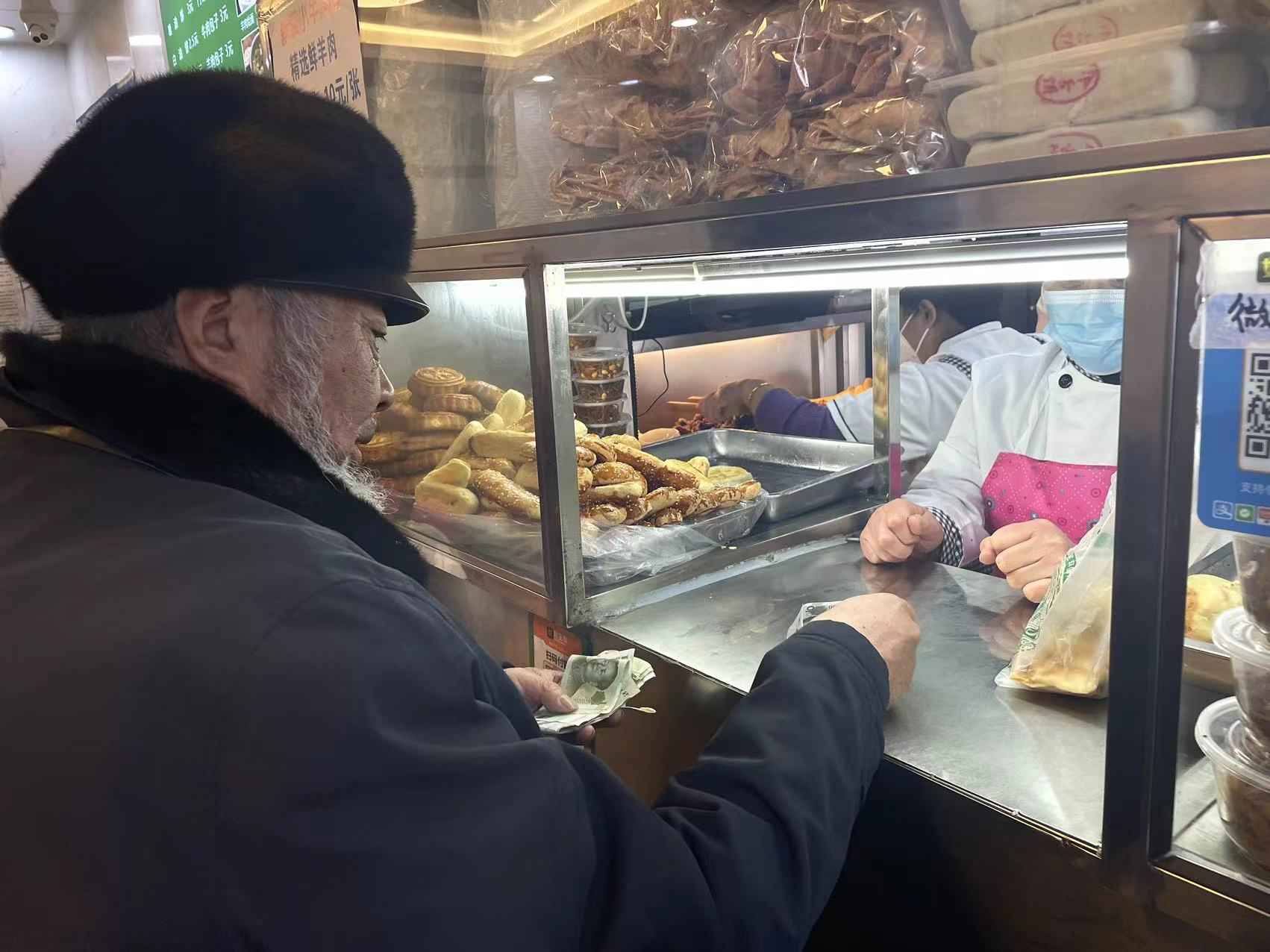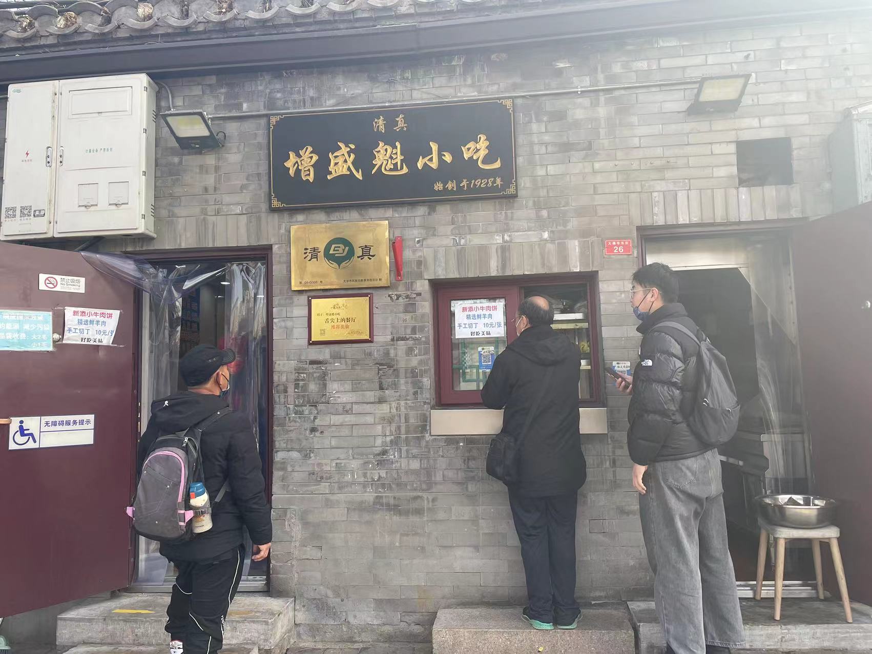「增盛魁小吃」是一家北京清真老字號,始創於1928年,已營業近一個世紀。隨着網絡達人的推介,也成為一家網紅店。記者到達店裏時雖已經過了餐廳客流高峰時段,來堂食和外帶的市民卻還是大排長隊。