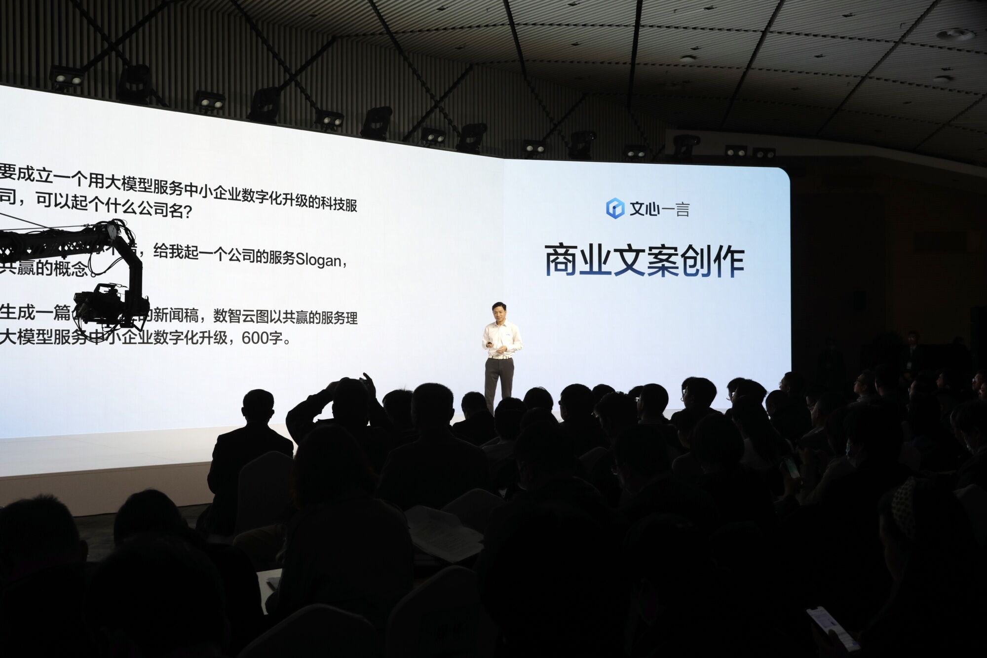 在展示過程中,談到「文心一言」能不能處理英文的問題,李彥宏表示可處理,但「文心一言」對英文的理解和處理能力現在還沒有中文這麼好,部分原因是因為訓練數據樣本還不夠大,未來英語能力會進一步提升。