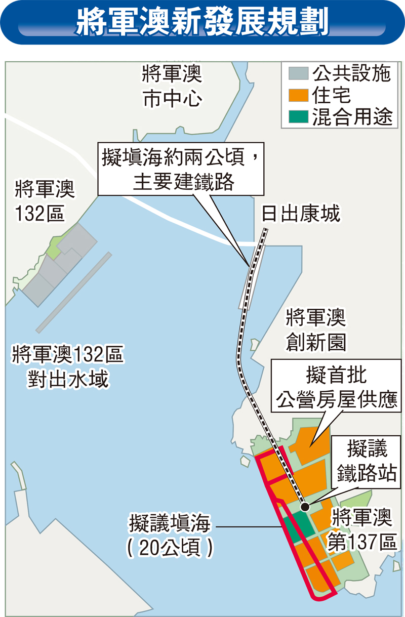 就香港文匯報的查詢,發展局回應表示,局方於立法會發展事務委員會會議、西貢區議會會議及多場會面中已表明,建議於將軍澳第132區對出以填海和削坡方式提供最多約25公頃土地,以容納有特定地域要求並且需設置於臨海位置的公共設施,這些設施均需設置於臨海位置,以應付日常運作需要。