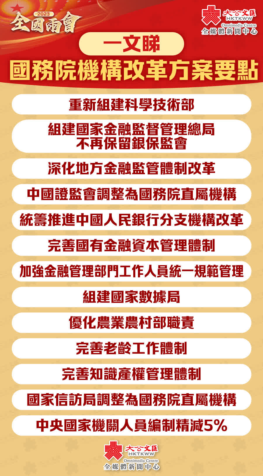 教育部對外保留國家語言文字工作委員會牌子。工業和信息化部對外保留國家航天局、國家原子能機構牌子。人力資源和社會保障部加掛國家外國專家局牌子。自然資源部對外保留國家海洋局牌子。生態環境部對外保留國家核安全局牌子。農業農村部加掛國家鄉村振興局牌子。