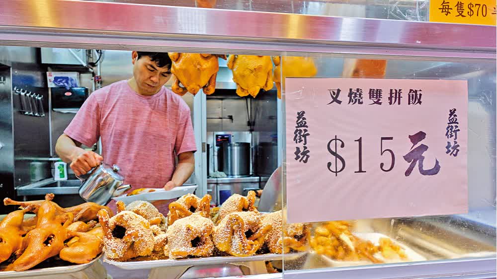 隨着社會復常,食肆生意穩步恢復,兩餸飯等外賣飯盒生意反而遇上挑戰。近月,深水埗一間燒味店推出「破底價」15元雙拼燒味飯,大公報記者日前下午2時到訪,即使午市時間已過,仍有不少拄着枴杖的長者光顧,也有市民好奇嘗試。燒味店職員說,15元雙拼飯自2月推出,平均日售200個,購買的大多數是老人家,他笑言要靠薄利多銷。