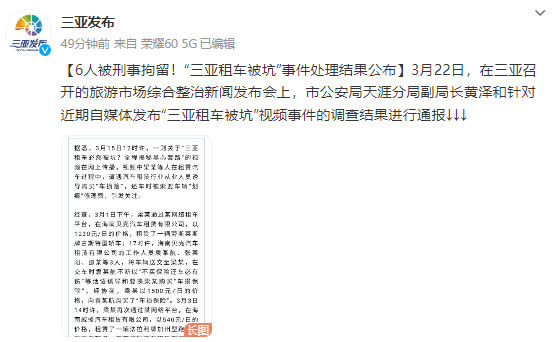 據三亞市委宣傳部新聞發布官方微博消息,3月22日,在三亞召開的旅遊市場綜合整治新聞發布會上,市公安局天涯分局副局長黃澤和針對近期自媒體發布「三亞租車被坑」視頻事件的調查結果進行通報。